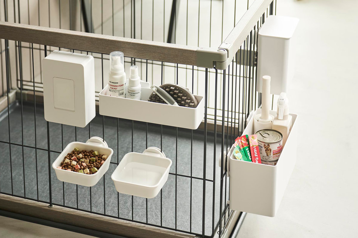 シリーズで揃えて使用すると、お世話に必要なアイテムをゲージに取り付けてまとめて管理できます。ケージ周りの生活感を抑えながら清潔感のある空間を保ちます。