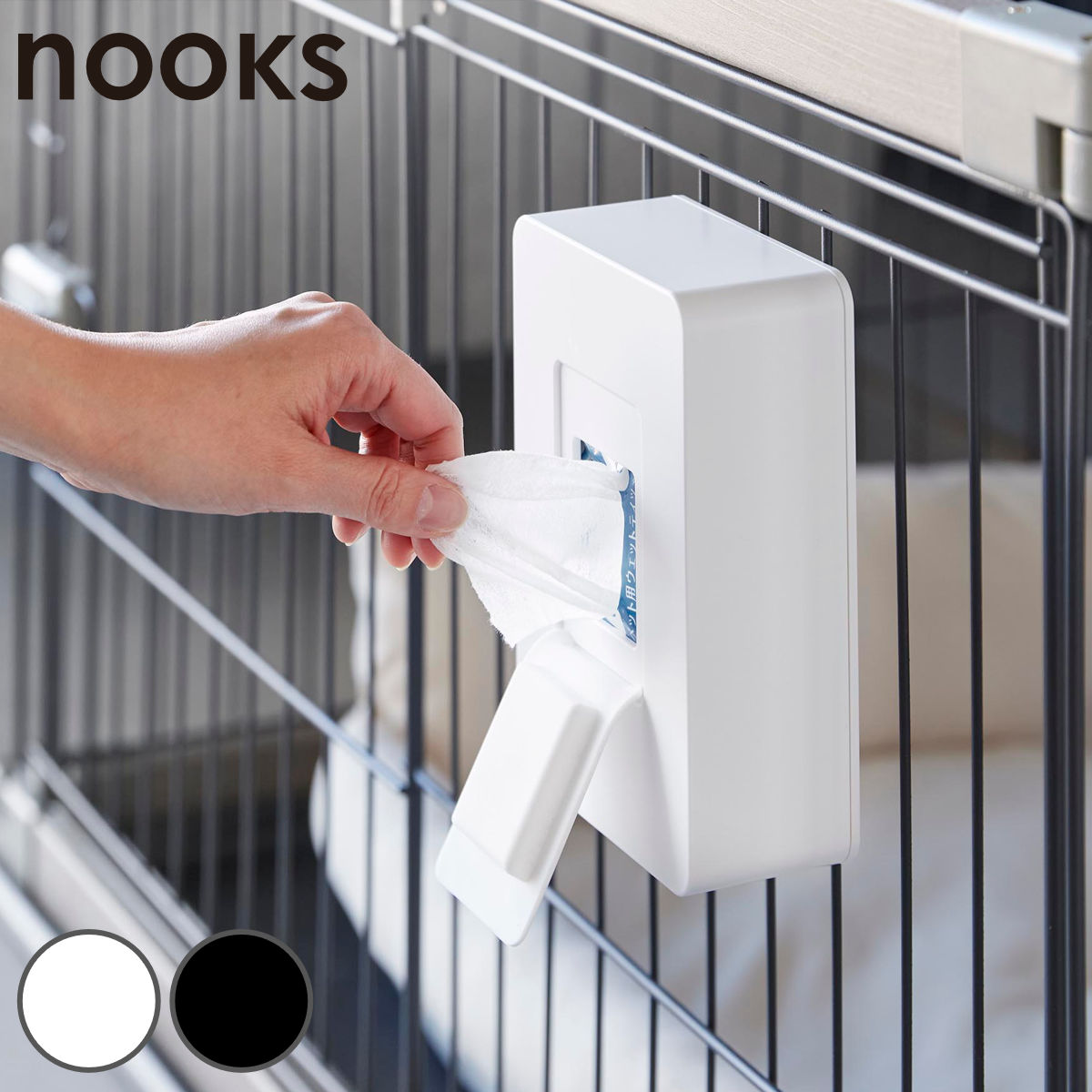山崎実業 nooks ペットケージに取り付けるウェットティッシュケース ヌークス ( 4903208104548 ヌークスシリーズ ペット用品 ウェットティッシュケース ペットケージ ウェットティッシュ ケース 取り付け簡単 ペット用 ) 【ブラック】