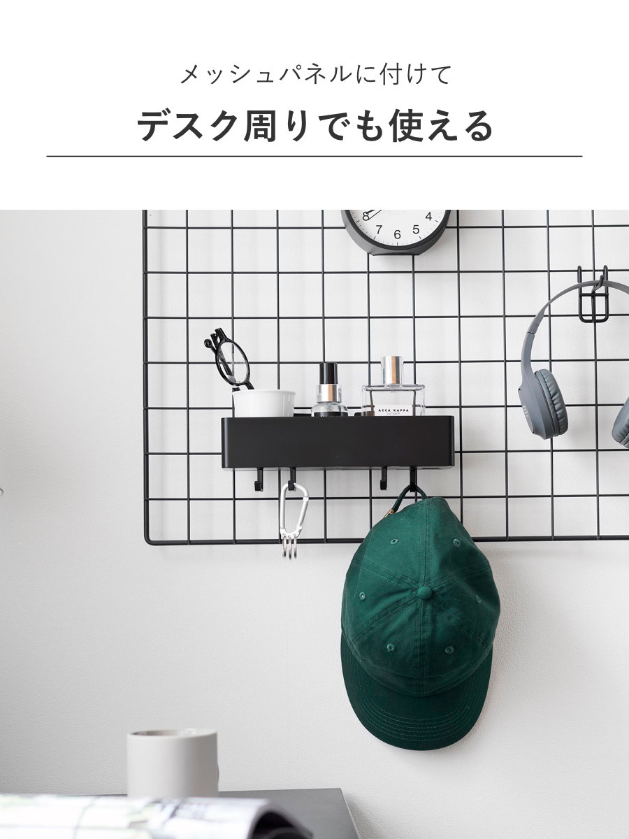 デスク周りでは、メッシュパネルなどにも取り付けが可能です。あると嬉しい場所に手軽に取り付けて使用できます。