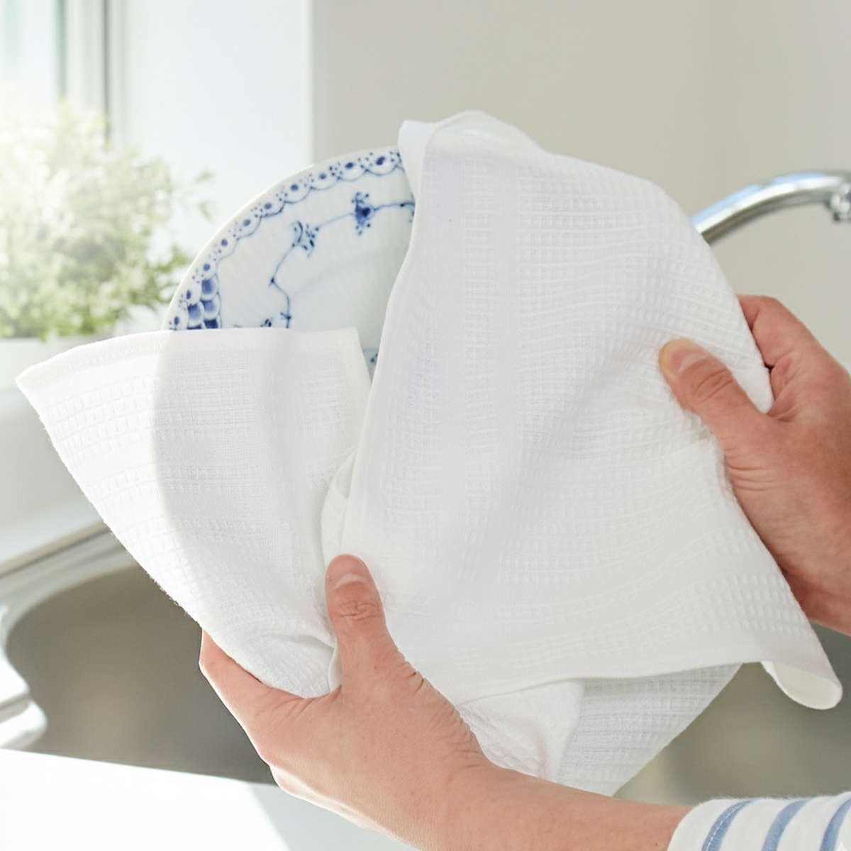 凹凸のあるワッフル生地が水分をサッと吸収し、拭き跡が残りにくい仕上がりに。繰り返し洗濯しても質感が落ちにくく、使うほどに柔らかさが増していきます。