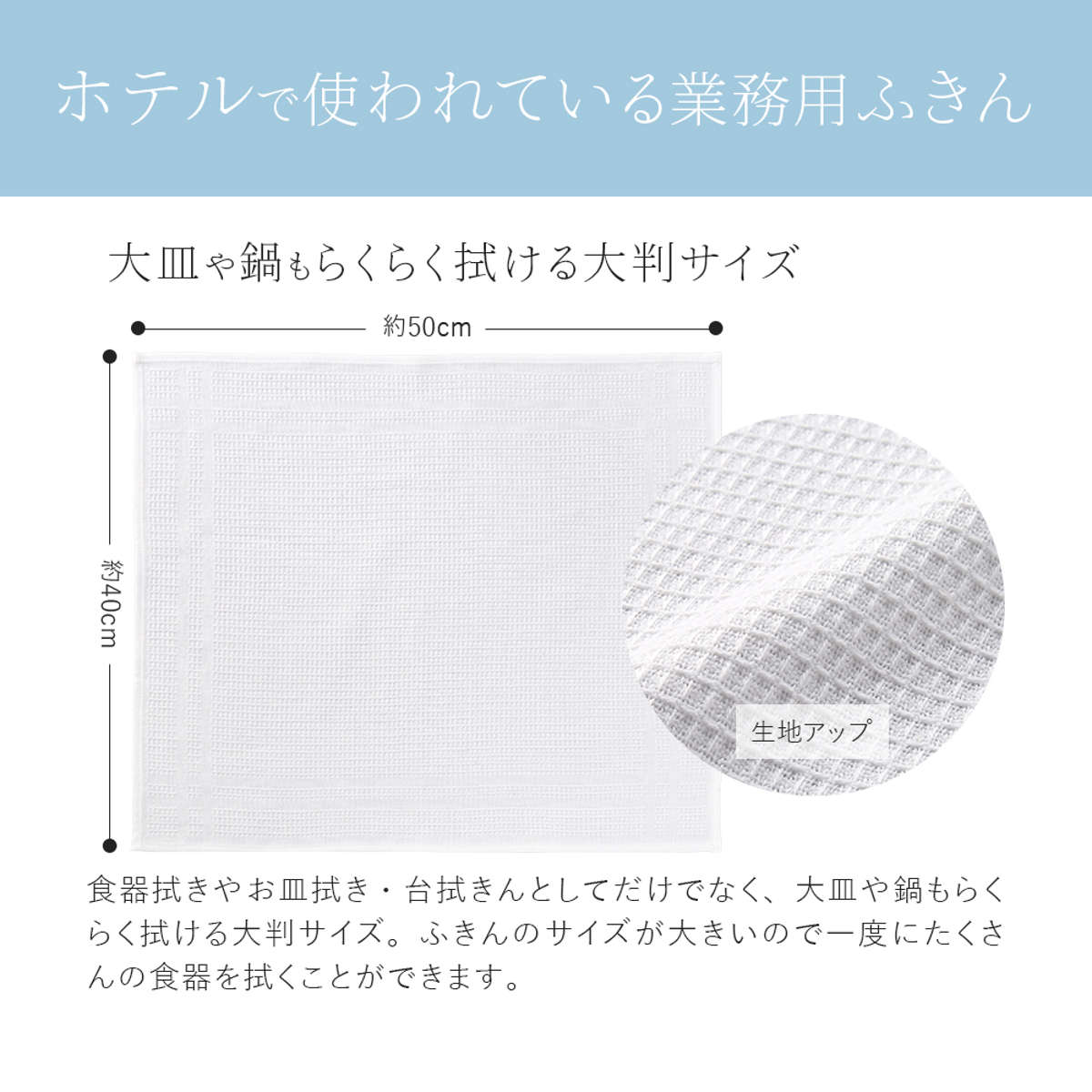 ●ホテル仕様のキッチンふきん大判サイズです。