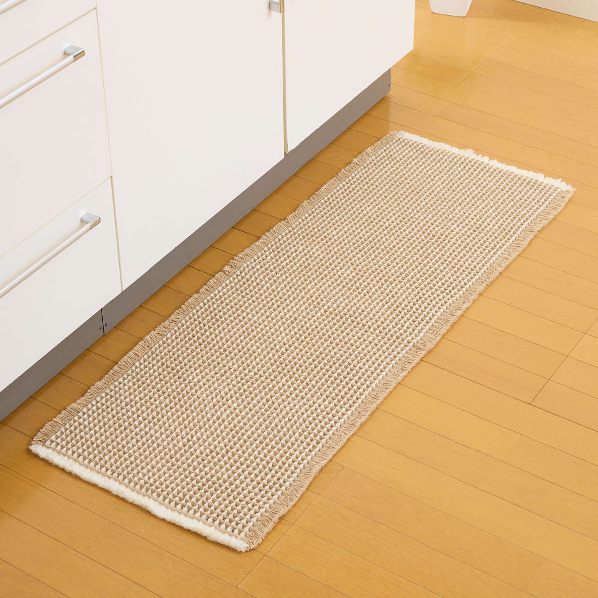 ふわふわ気持ちいい 厚手のワッフル織りキッチンマット