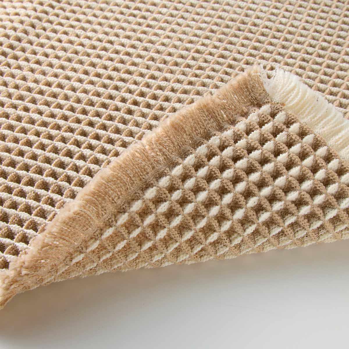 表面に四角い凹凸を施した厚手のマットで、インテリアに自然と馴染むデザインです。ふわふわの踏み心地が心地よく、毎日の足元を快適にしてくれます。