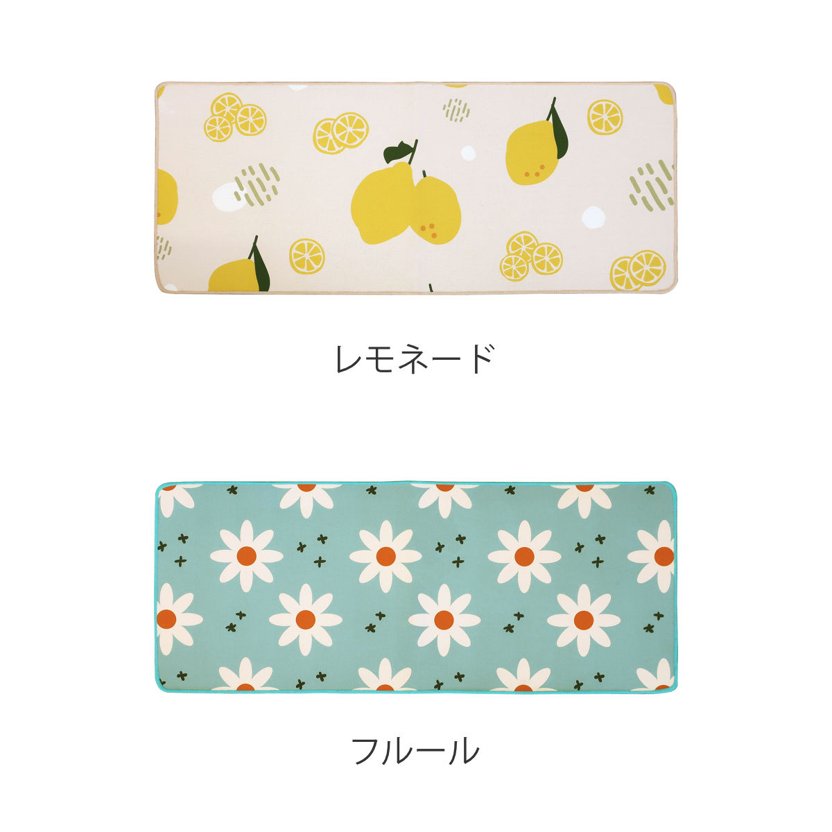 レトロ感のあるレモン柄と花柄がお洒落なマットです。キッチンはもちろん、玄関やベッド横、ソファ下など、お部屋のアクセントとしてもご使用いただけます。