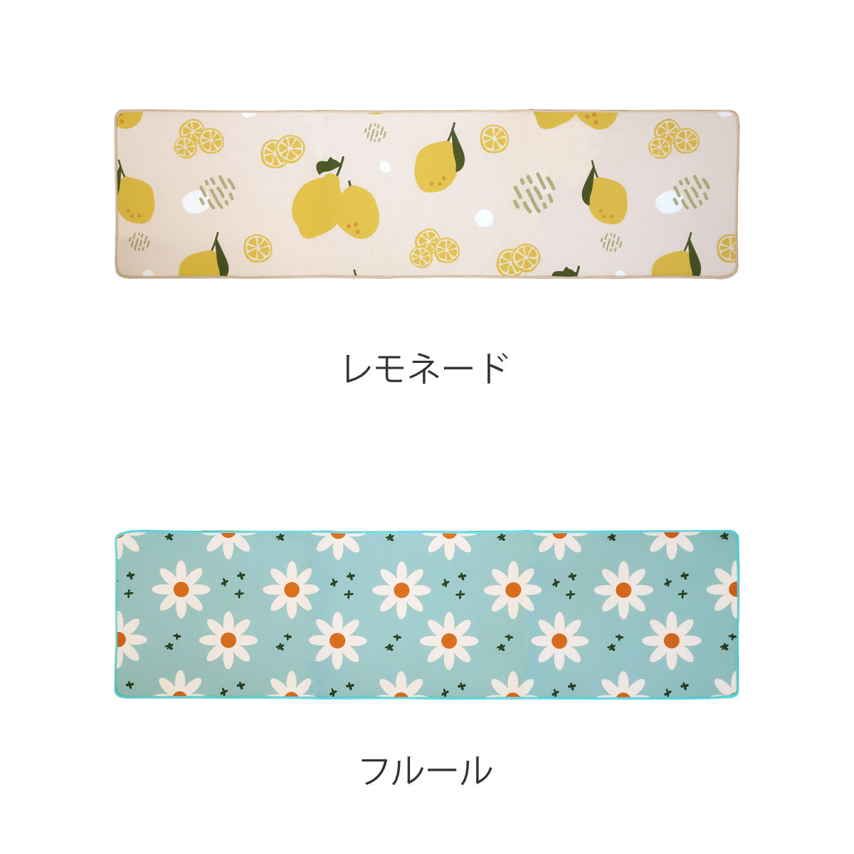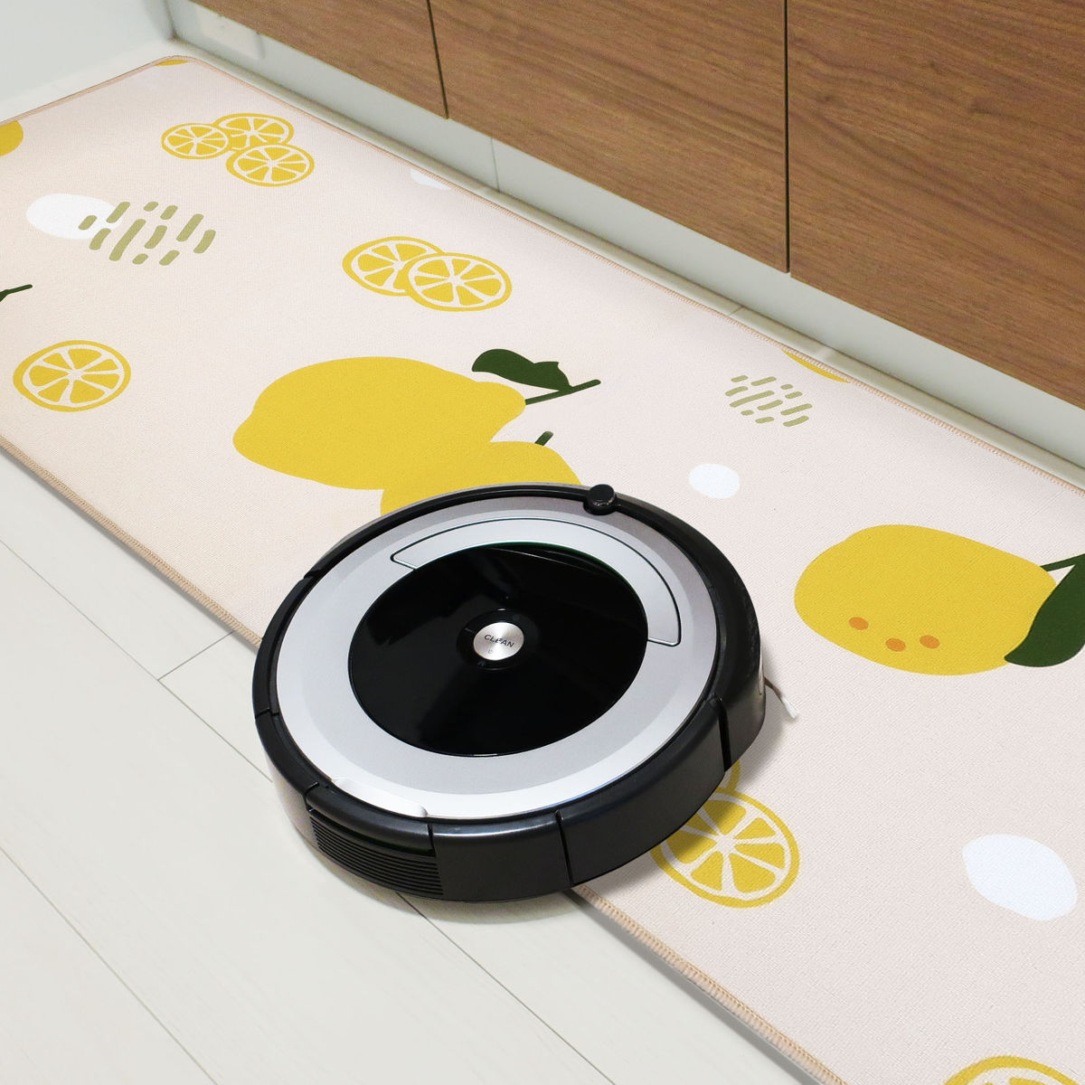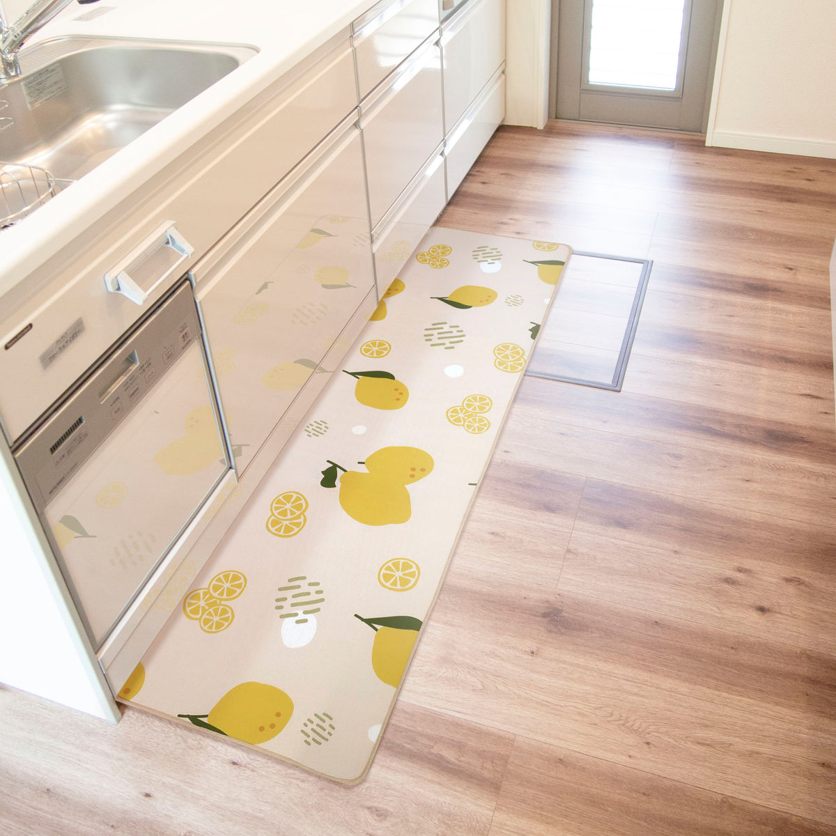 レトロ感のあるレモン柄と花柄がお洒落なマットです。キッチンはもちろん、玄関やベッド横、ソファ下など、お部屋のアクセントとしてもご使用いただけます。