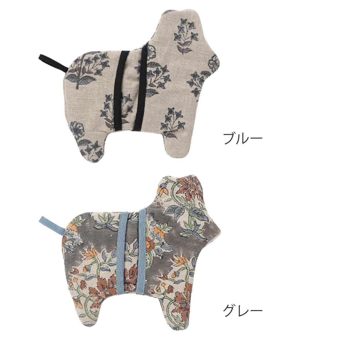 シャンブレーブロックプリントの生地でポニーを象ったミトンです。リネン風の軽やかなシャンブレー生地を使用しており、南仏を思わせるやわらかく軽やかな雰囲気と、ナチュラルで優しい風合いが魅力です。