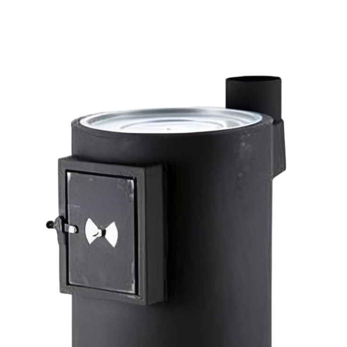プロパンボンベを再利用して製造された、環境にも配慮した丸型薪ストーブです。肉厚のスチール素材に耐熱塗装を施し、過酷な屋外環境でも安心して使用できる堅牢構造を実現しています。寒冷時の暖房はもちろん、災害時の炊き出し設備としても活躍します。さらに、ロストル部分には鉄筋丸棒を採用しており、薪をしっかり支えながら安定した燃焼をサポートします。