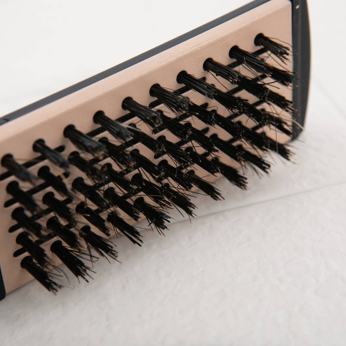 天然豚毛とナイロン毛を組み合わせたミックスブラシが、髪をやさしくとかしながらツヤをプラス。豚毛に含まれる天然油分がパサつきを抑え、さらに静電気の発生も抑えることで、まとまりのある艶髪へ導きます。