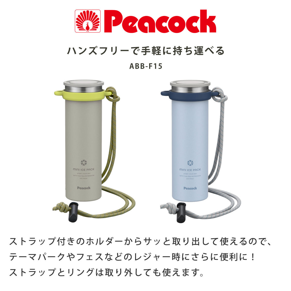 ネッククーラー アイスパック ストラップ ピーコック 氷のう ミニアイスパック ショルダータイプ ( アイスバッグ 氷嚢 保冷 アイシングバッグ ショルダー付 持ち運び スリム 携帯 氷袋 熱冷まし アイスバック アイシング 氷枕 ) 【アイスブルー】