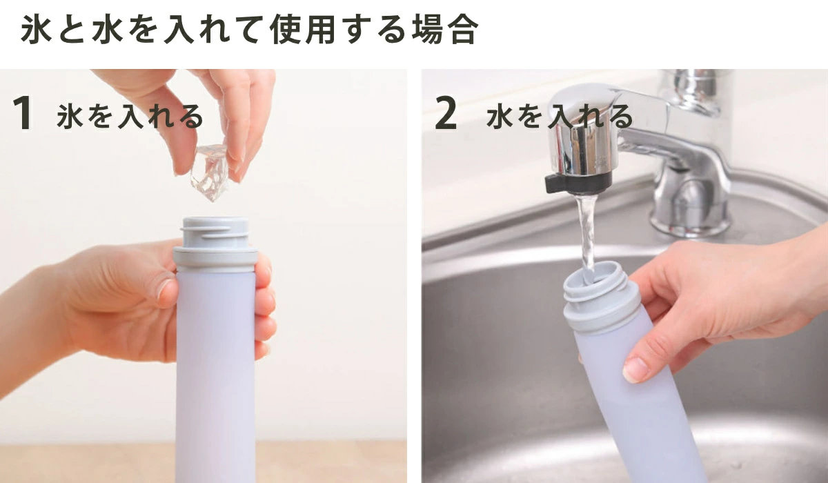 シリコーン氷のうは、凍らせて使用する以外にも、氷(または氷と水)を入れて程よい冷たさで、お使いいただけます。すぐに使いたい時にも便利です。