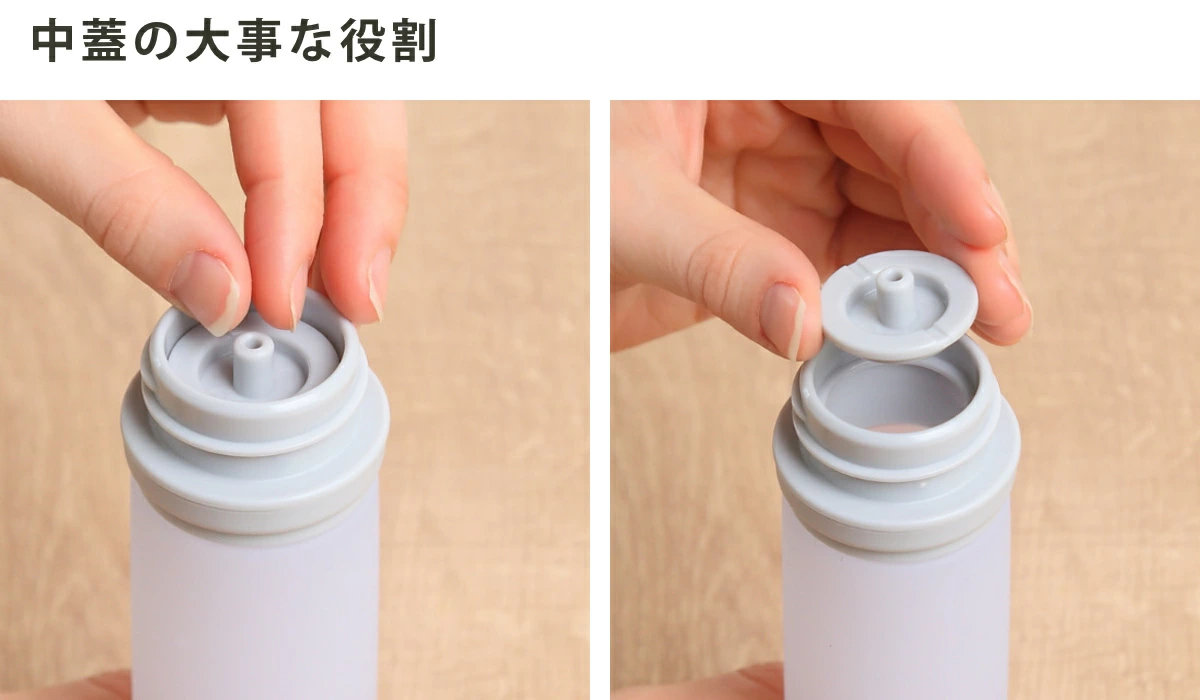 ※中蓋は結露防止機能を果たしているので、外さずご使用下さい