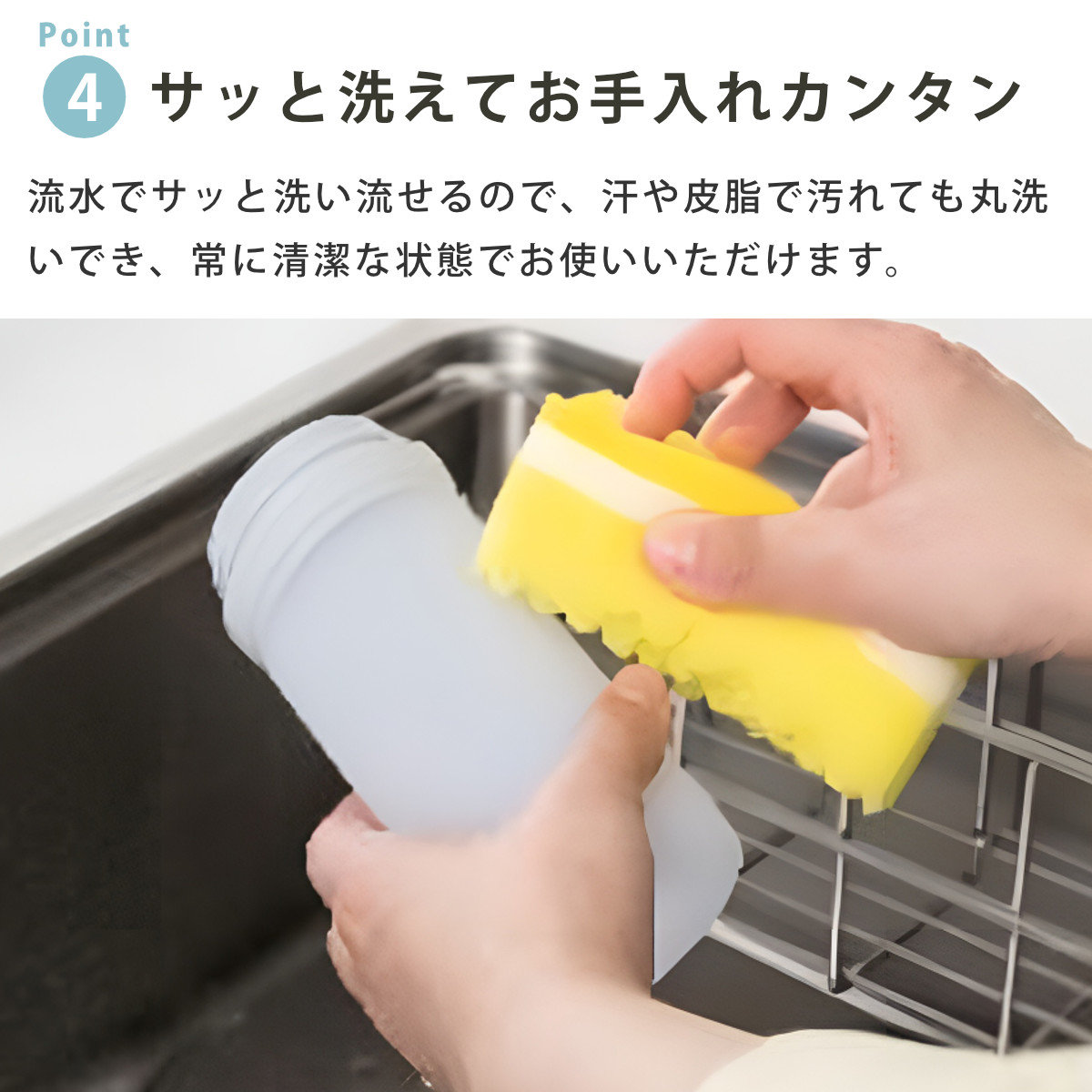 シリコーン素材は水滴がついてもサッと拭き取りやすく、肌に張り付くような不快感が少ないのが特徴です。