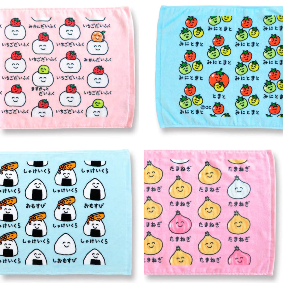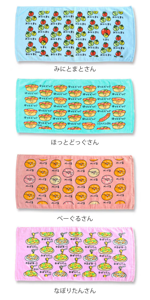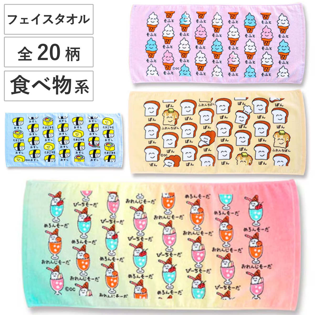 フェイスタオル 34×75cm 食べ物系柄 Part1 おえかきさん ( タオル 手拭きタオル 綿100 コットン たべもの 手書き風 かわいい デイリータオル たおる 汗拭きタオル フェイス 洗顔 洗面 新生活 ギフト バス用品 ) 【みにとまとさん】