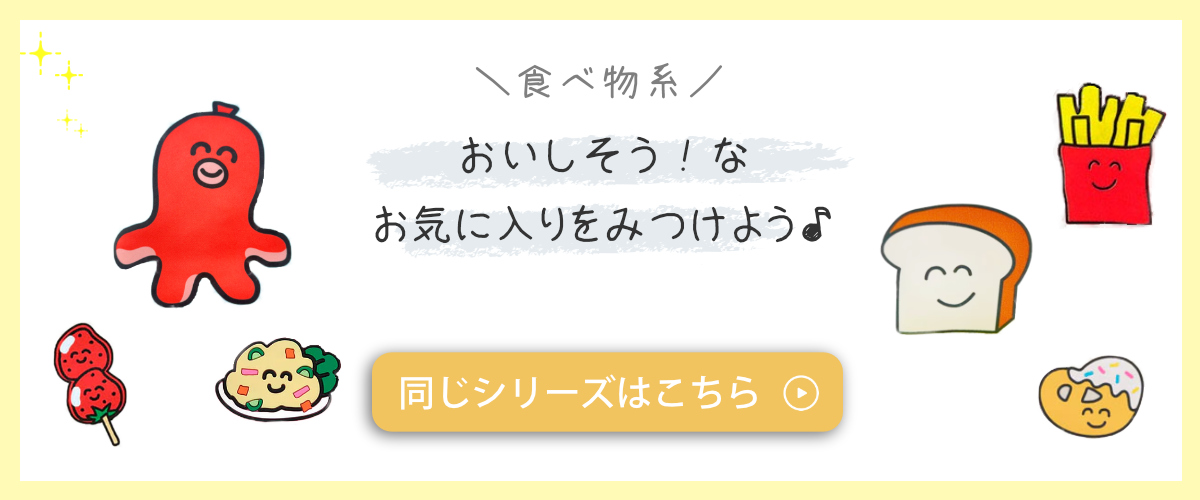 | 種類 | ぱんさん、ばななすむーじーさん、めろんそーださん、そふとさんカラフル、ぽてとさん、ばーがーさん、らーめんさん、おすしさんブルー、おむすびさん、けばぶさん、いちごだいふくさん、たまねぎさん、みにとまとさん、ほっとどっぐさん、べーぐるさん、なぽりたんさん、おすしさん玉子、おすしさんエビ、たこさんうぃんなーさん、やきそばさん |