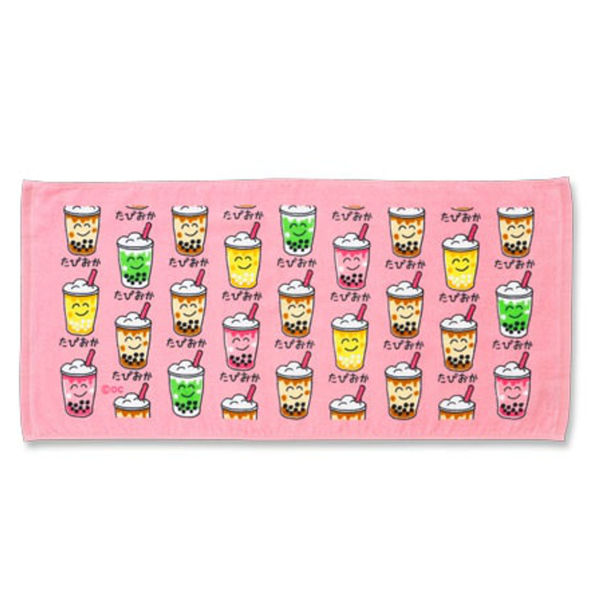 フェイスタオル 34×75cm 食べ物系柄 Part3 おえかきさん ( タオル 手拭きタオル 綿100 コットン たべもの 手書き風 かわいい デイリータオル たおる 汗拭きタオル フェイス 洗顔 洗面 新生活 ギフト バス用品 ) 【たぴおかさん】