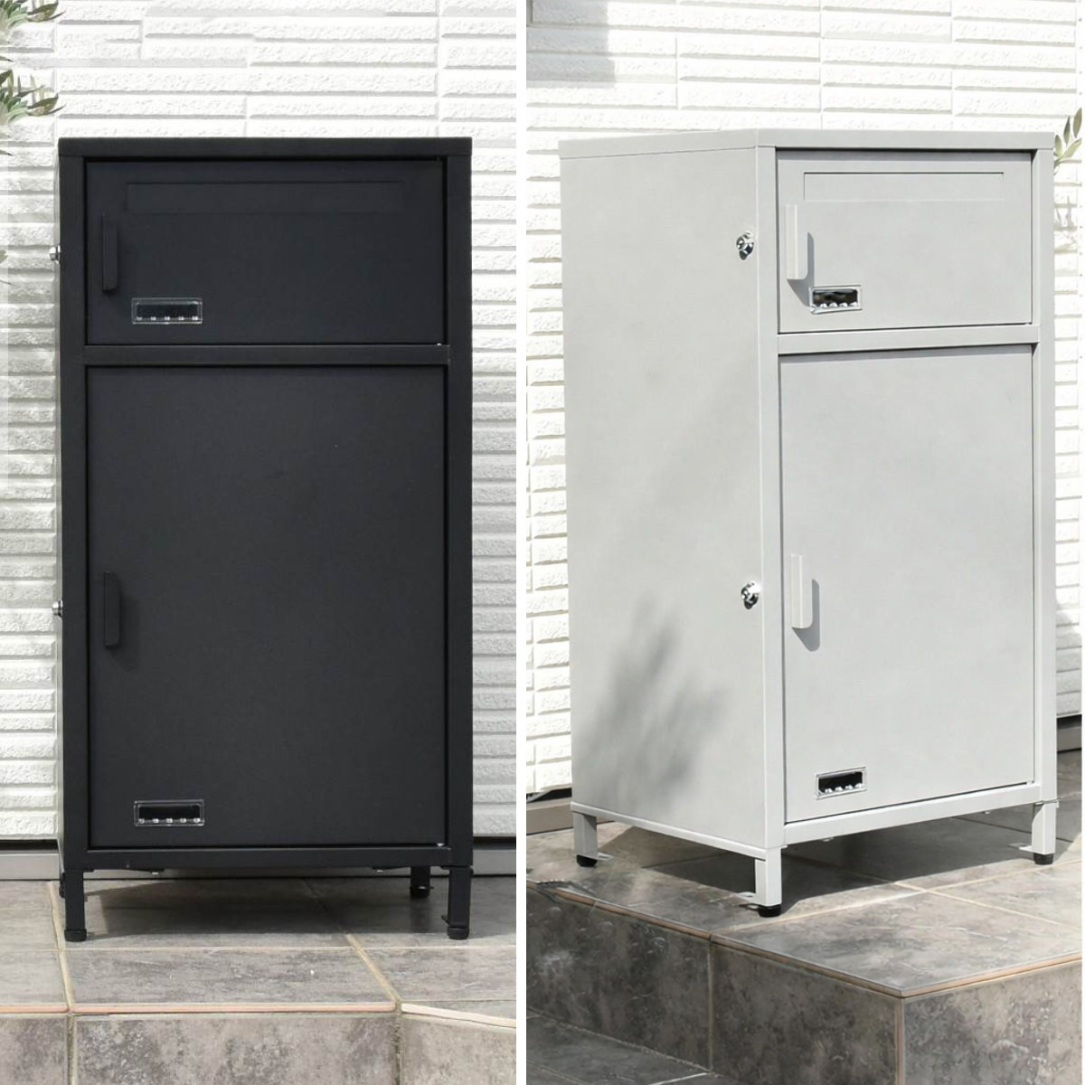 宅配ボックス 郵便ポスト Posten ポステン 半完成品 ( ポスト 宅配 ボックス 宅配ポスト 一戸建て用 スタンドポスト ポスト一体型 据え置き 置き配用ボックス 郵便 郵便受け 宅配BOX 2段 プッシュキー 鍵付き ) 【グレー】