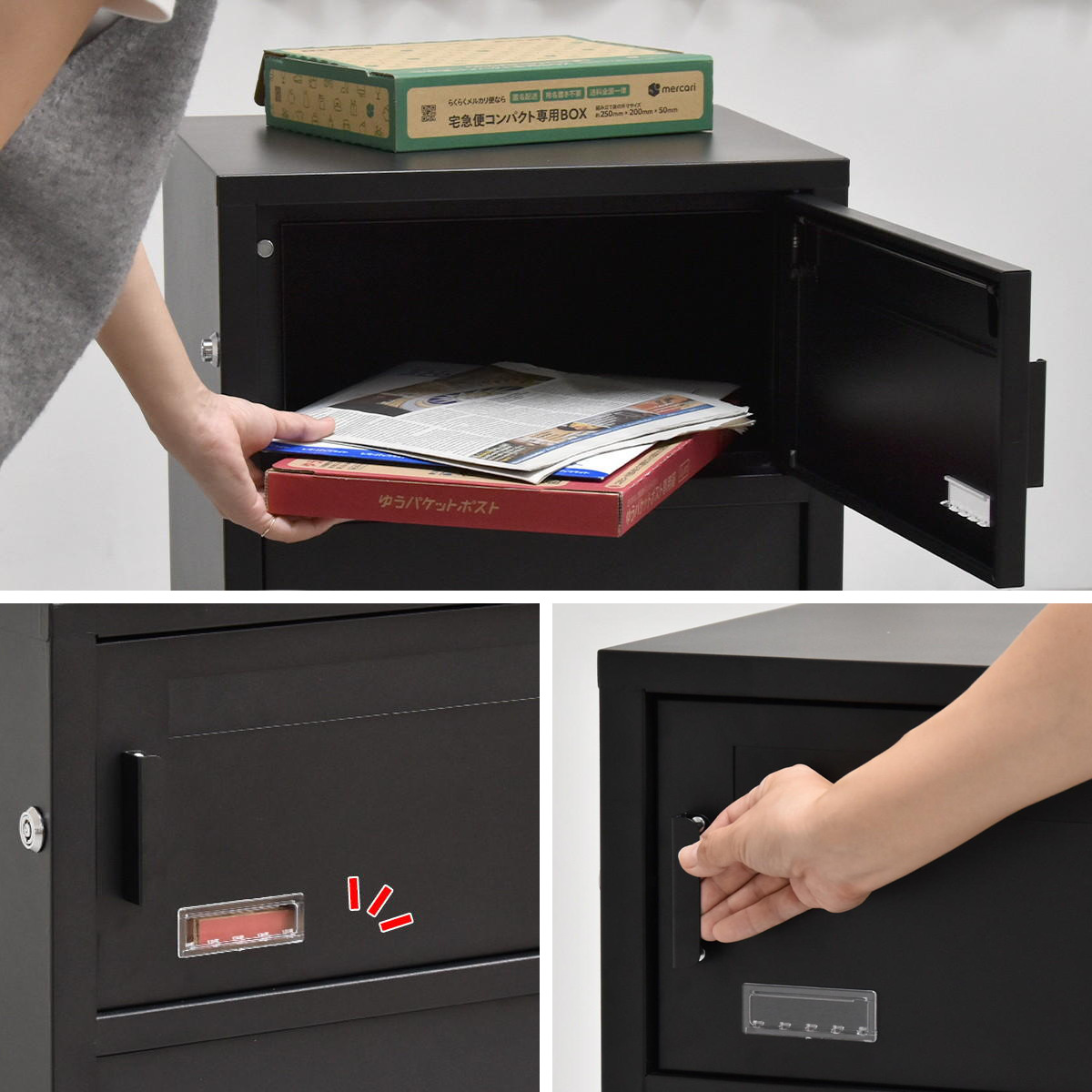 | サイズ | 約 幅42×奥行36×高さ82(cm) 投函口サイズ:約 幅28.3×高さ3(cm) 取出口(上段):約 幅33×奥行32.5×高さ16.5(cm) 取出口(下段):約 幅33×奥行32.5×高さ47.5(cm) |