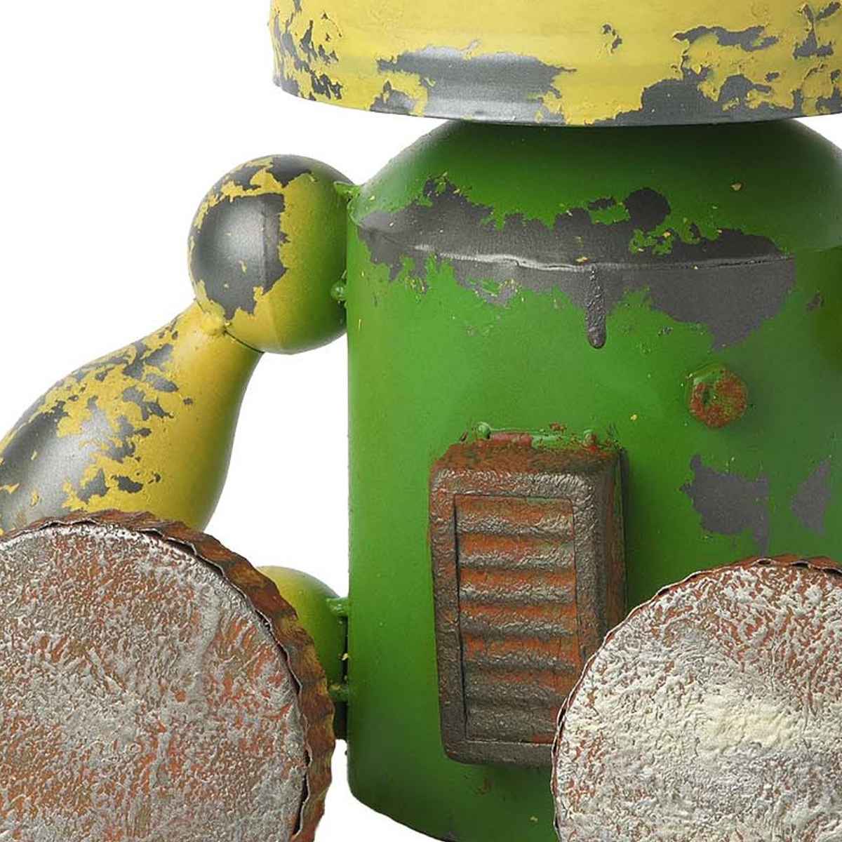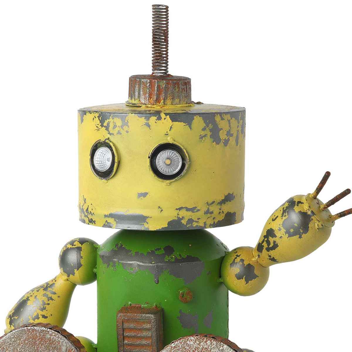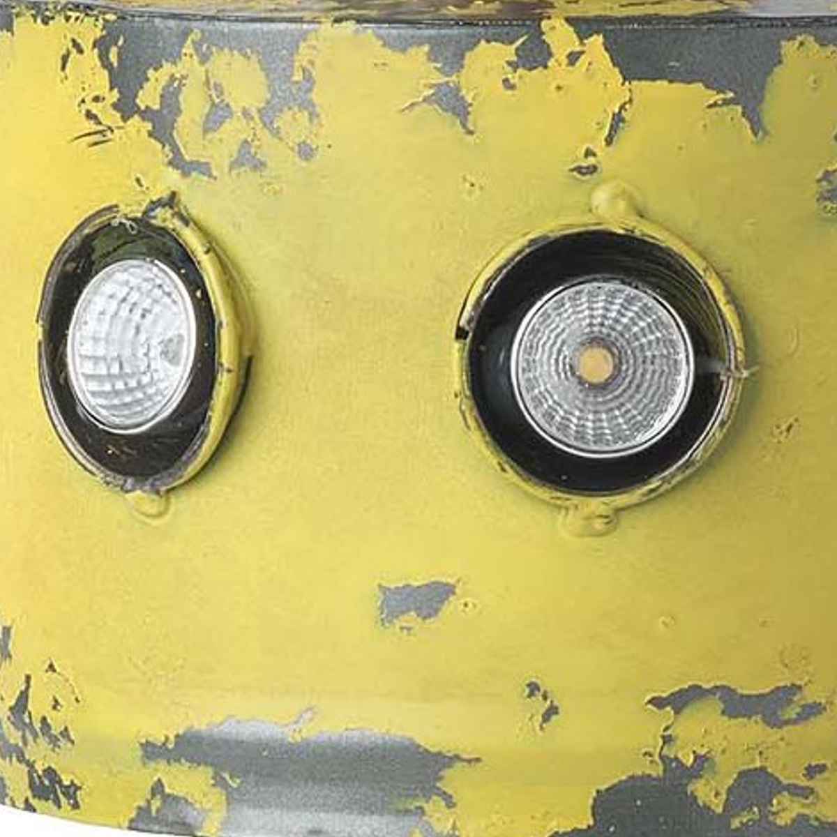 頭上にソーラーライトが付いていて、暗くなるとロボットの目が点灯します。昼と夜で異なる表情を楽しめます。