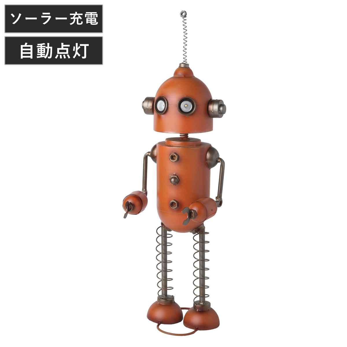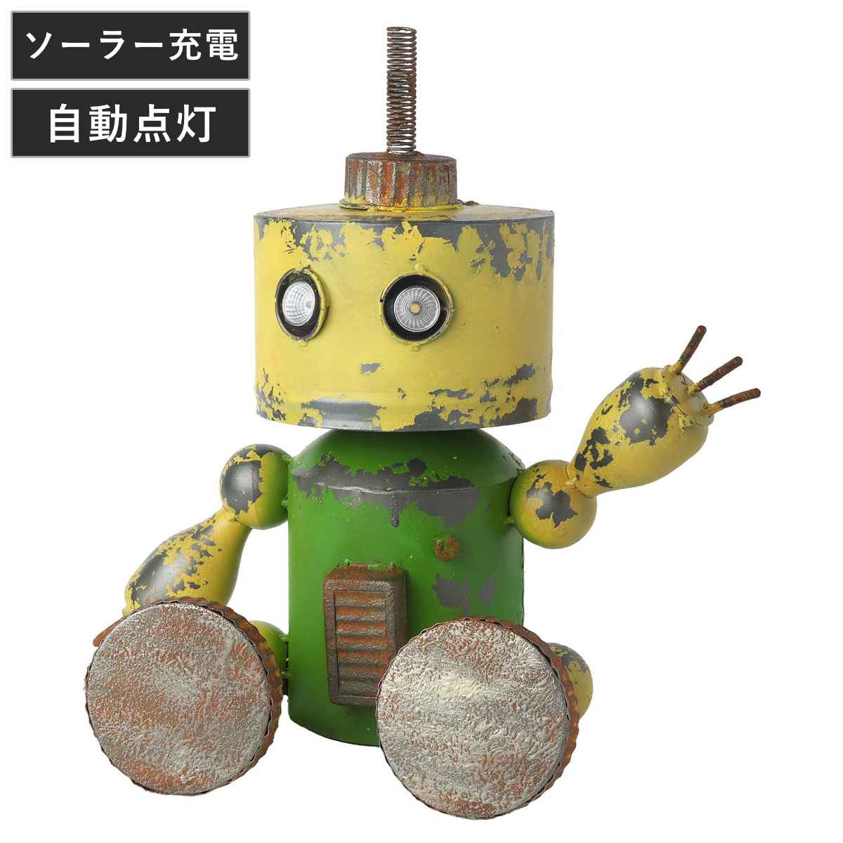 ガーデンオーナメント ロボット ソーラーライト付 イエロー ( 置物 オブジェ ガーデン オーナメント 光る 自動点灯 庭 インテリア 雑貨 屋外 ガーデン雑貨 園芸 ガーデンインテリア ソーラーライト付き 太陽光 ライト )