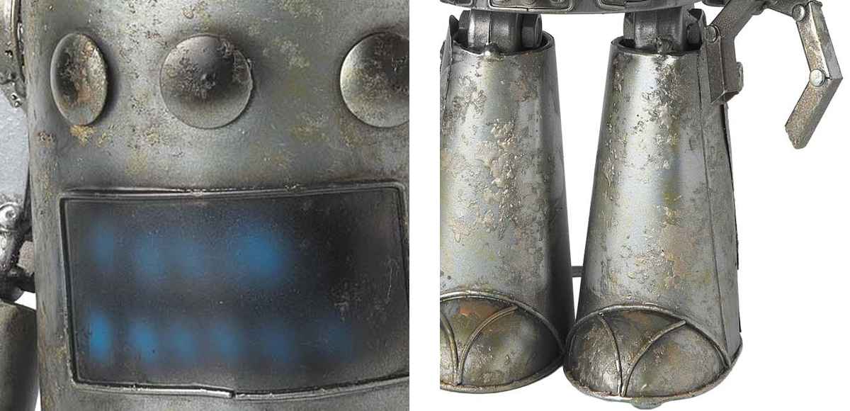 どこか懐かしさを感じさせる、愛らしいロボットのオーナメントです。まるで物語の世界のようなレトロな雰囲気を演出します。