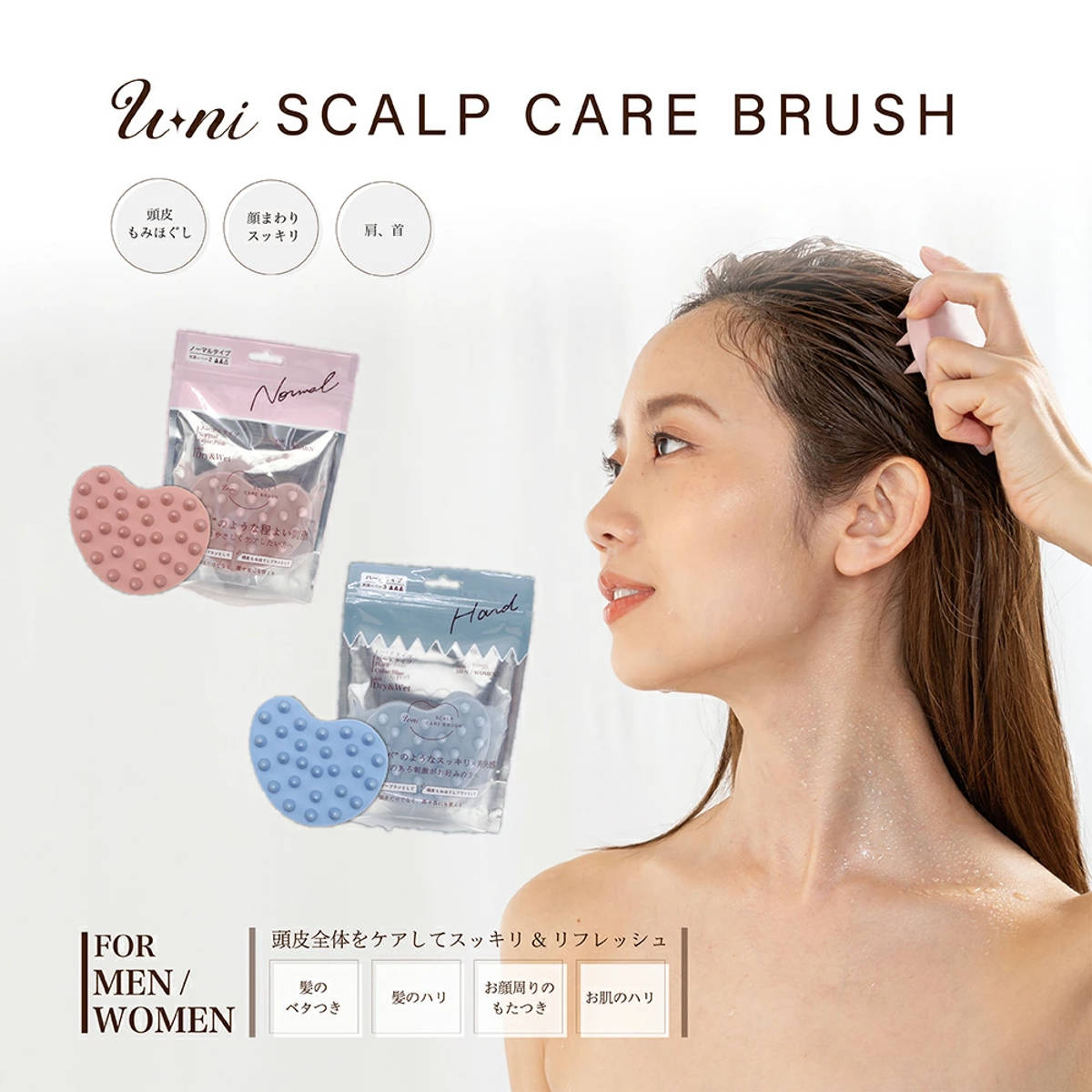 27個の円錐型突起が頭皮に心地よくフィット。やさしくもみほぐしながら、手軽にスカルプケアができます。頭皮ケアはもちろん、顔まわりや首・肩のリフレッシュにも使える、毎日のセルフケアアイテムです。シャンプー時にも、お風呂上がりのリフレッシュにも使えて、シーンに合わせたケアが可能です。