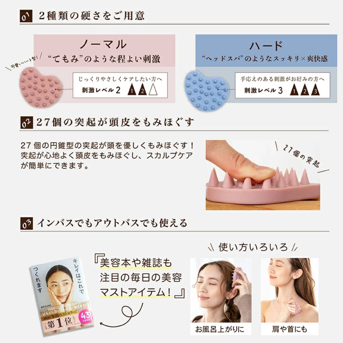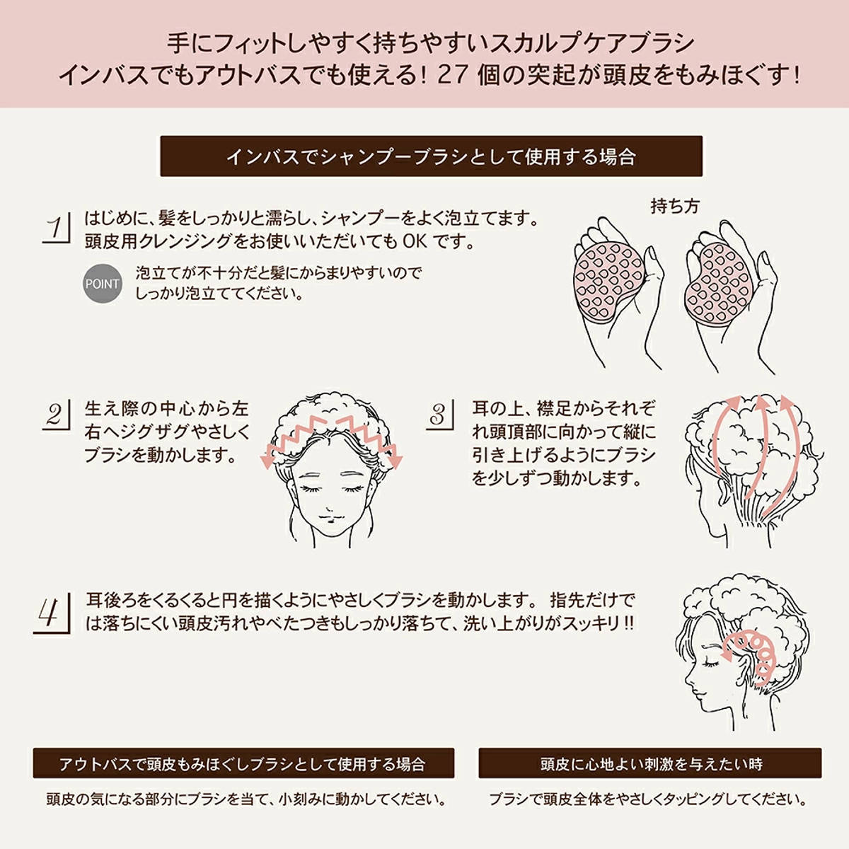 27個の突起で頭皮をしっかりもみほぐす
