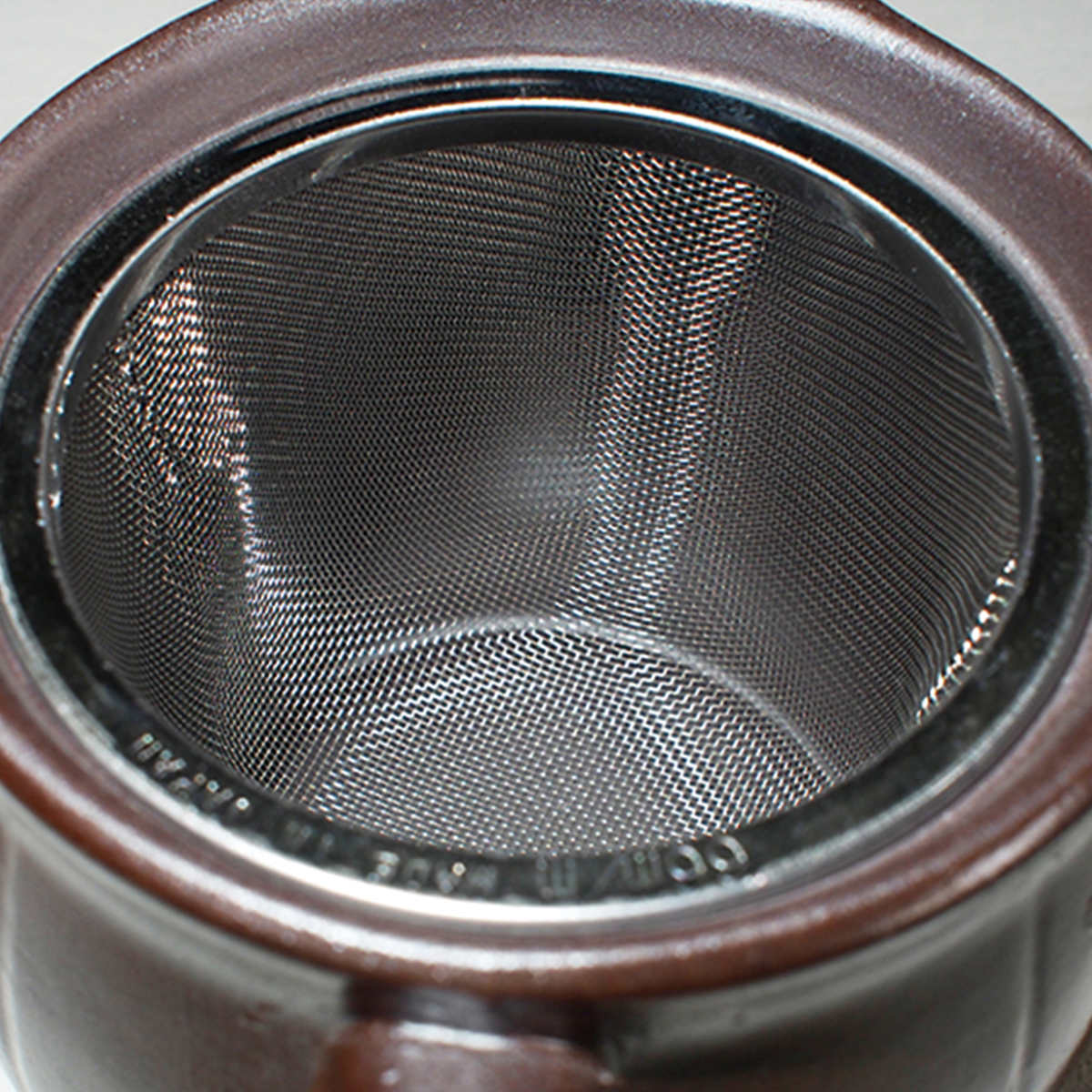 取り外し可能なステンレス製の茶こし付きです。急いでお茶を淹れるときも便利で、茶葉の処理や洗浄も簡単にできます。