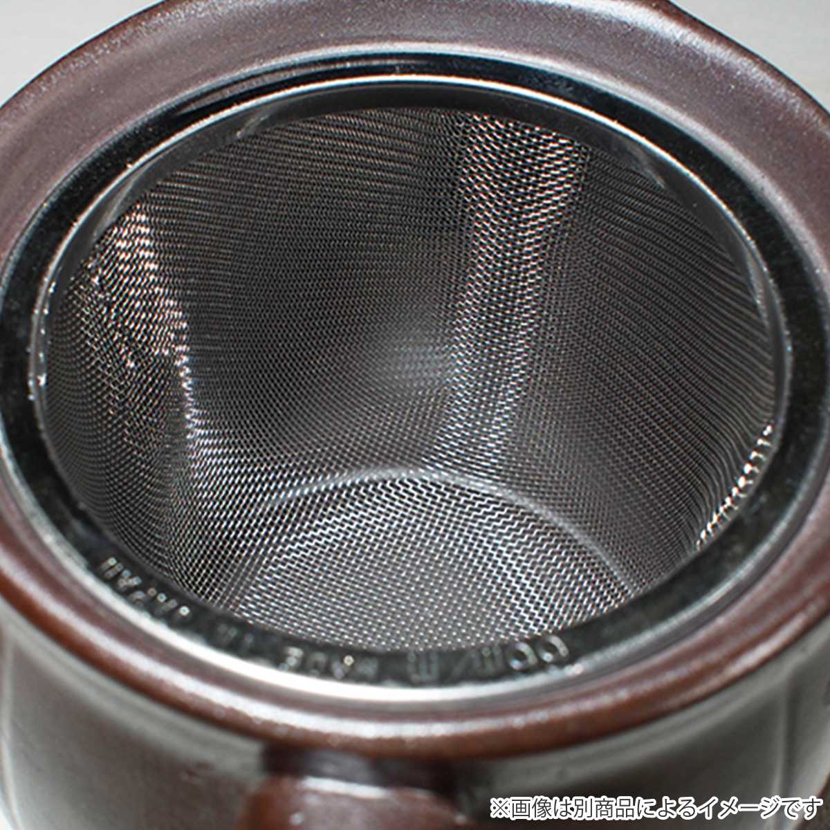 注ぎ口の内側に円形に取り付けられた丸網を採用しています。網の面積が広く詰まりにくく、お茶をスムーズに注げます。茶葉をしっかりキャッチし、茶殻も捨てやすく洗いやすい仕様。細かい茶葉の煎茶や深蒸し茶にも使いやすい急須です。