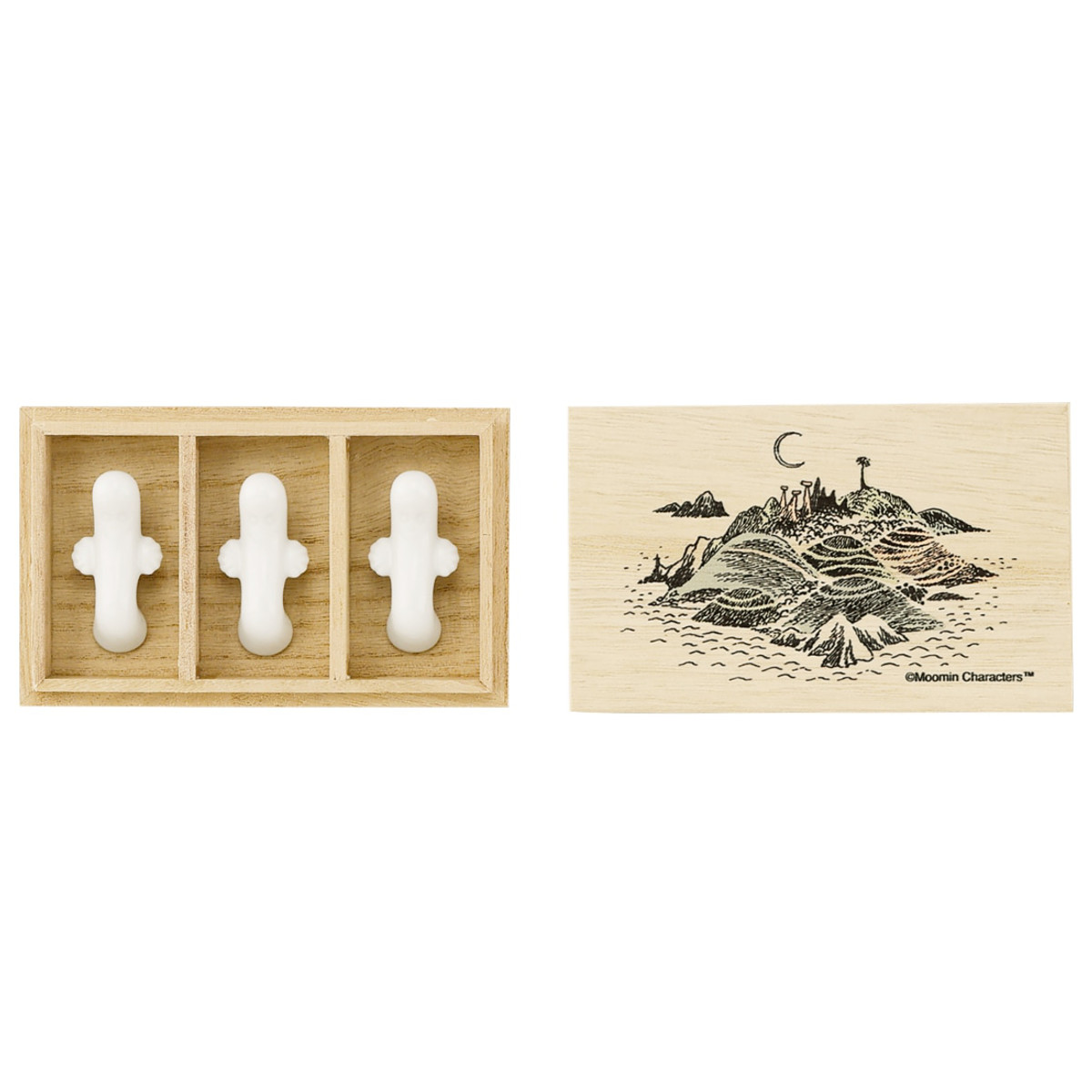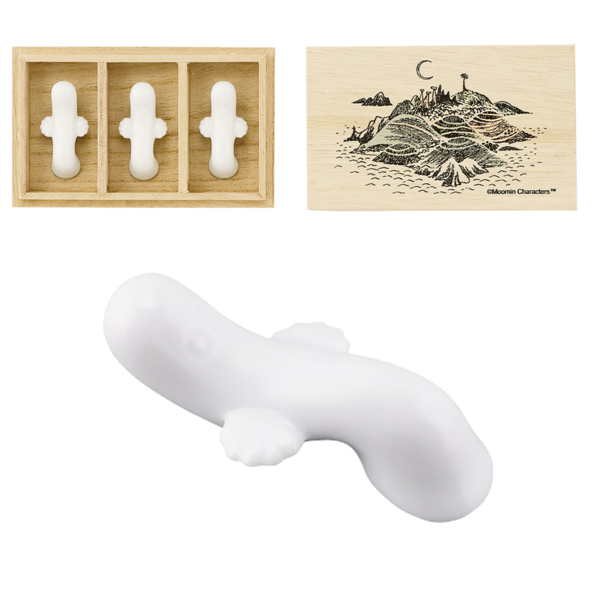 ムーミンのキャラクター、ニョロニョロがお箸を支えてくれる、かわいい磁器製の箸置き3個セットです。お箸やカトラリー置きとして毎日の食卓で大活躍します。高級感のある木箱入りなので、自分用にはもちろん大切な方への贈り物にも最適です。