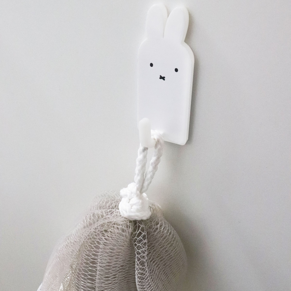 かわいいミッフィーデザインのフックです。マグネットで浴室の壁や洗濯機、冷蔵庫などに簡単に取り付けることができ、タオルや小物を手軽に掛けて収納できます。ちょこんと顔をのぞかせるミッフィーがアクセントになり、空間をさりげなくかわいく演出します。