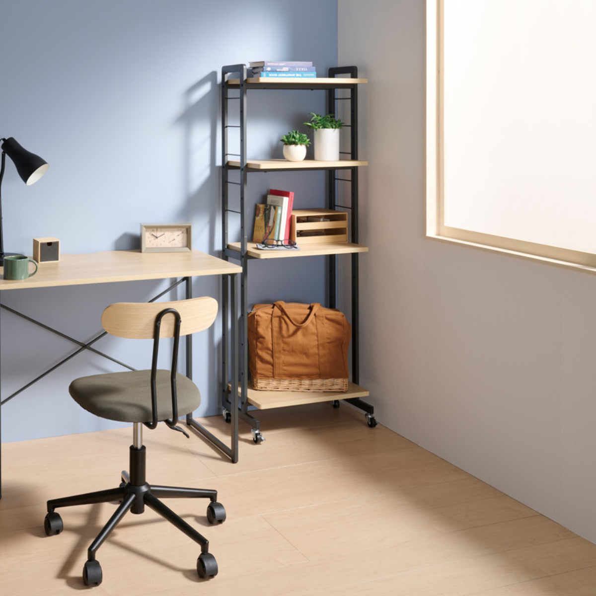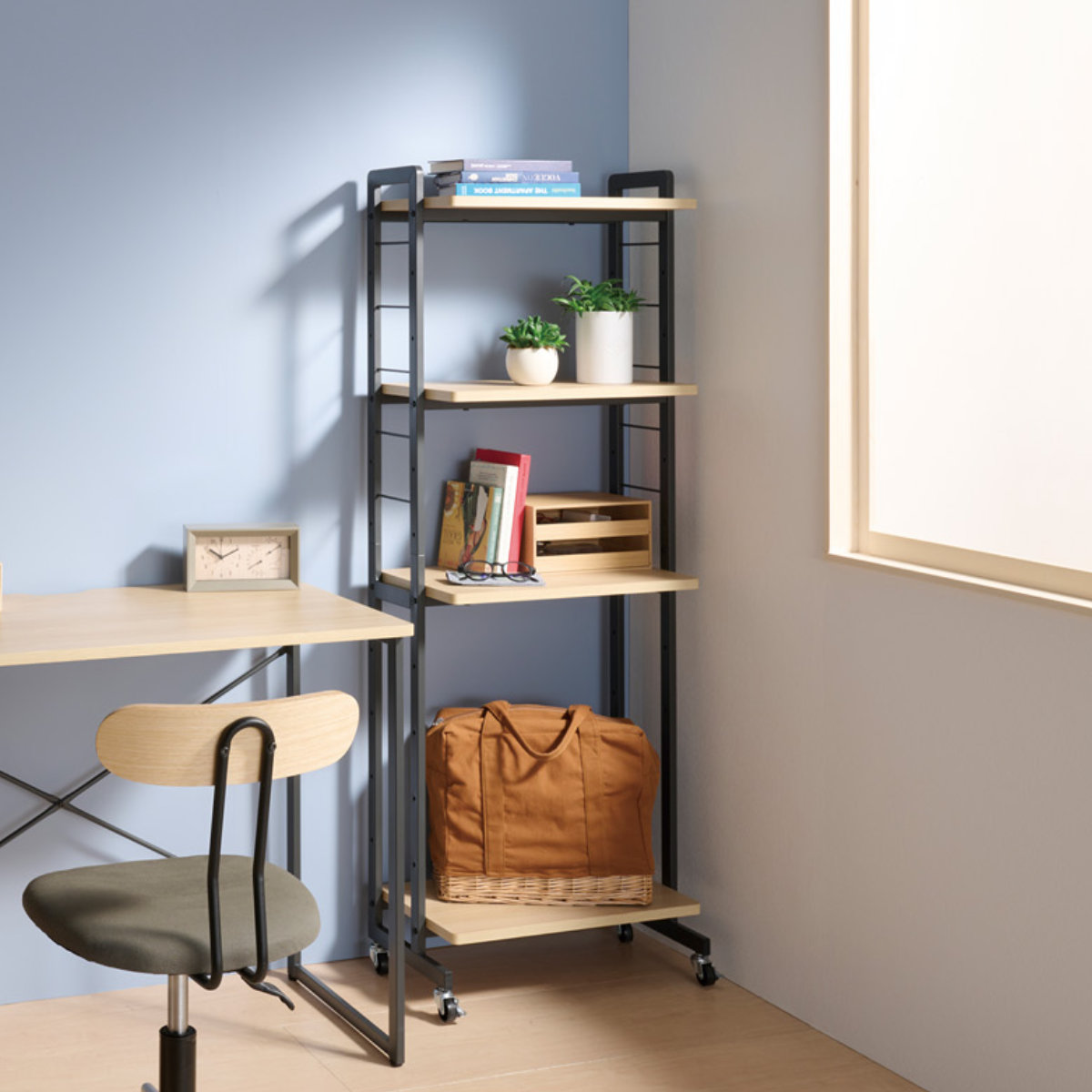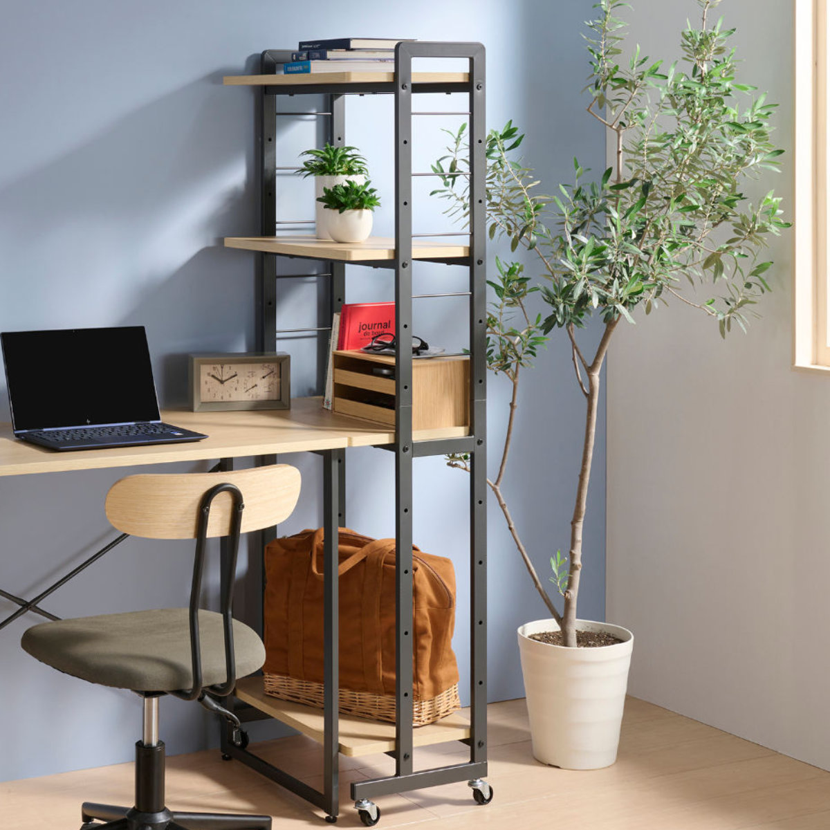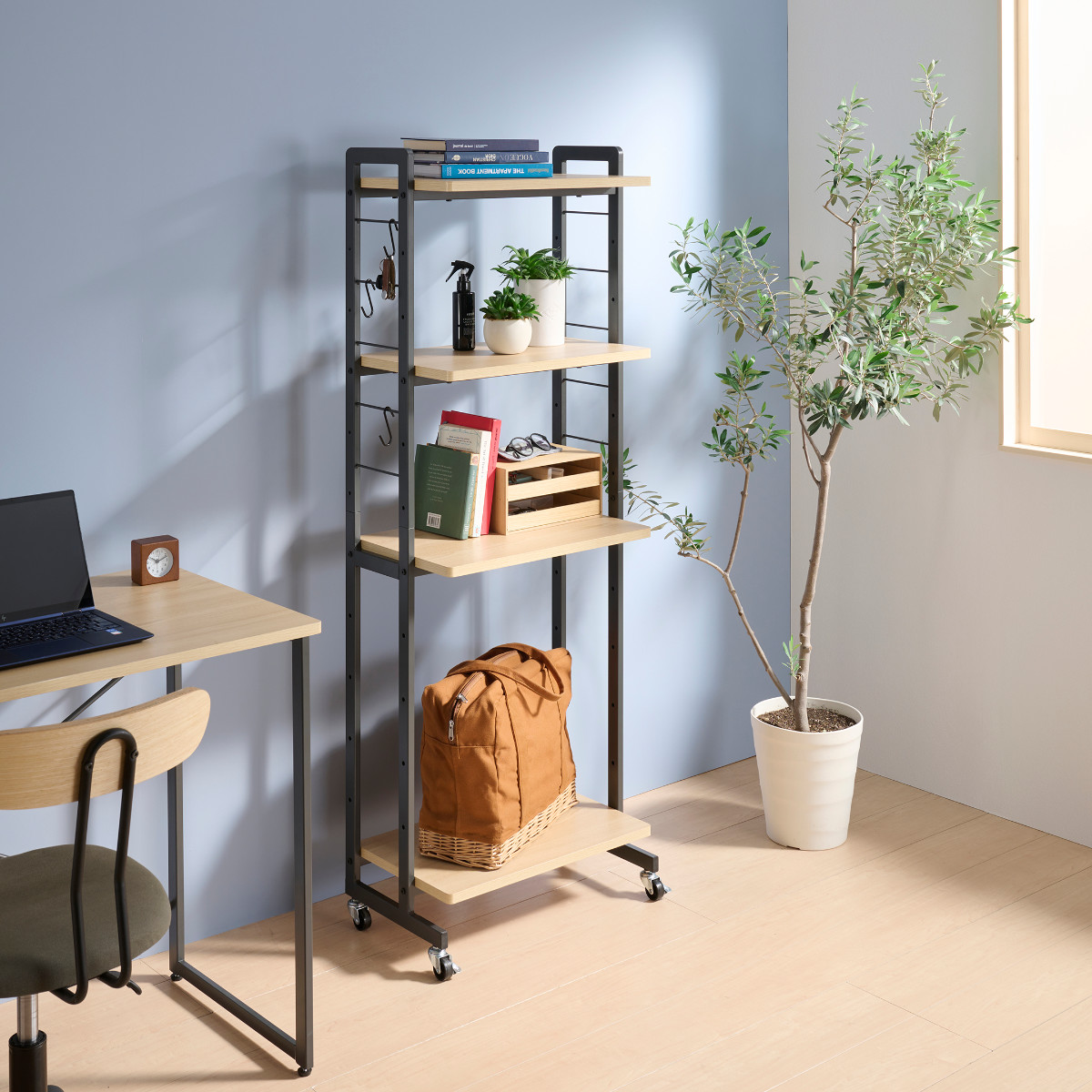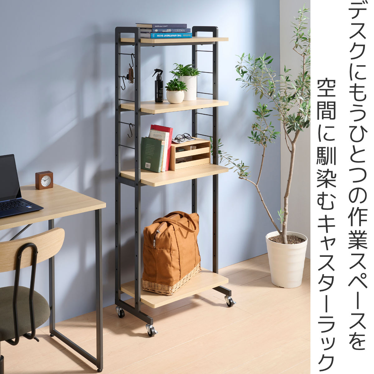 作業も収納もスマート叶う、キャスター付きラック