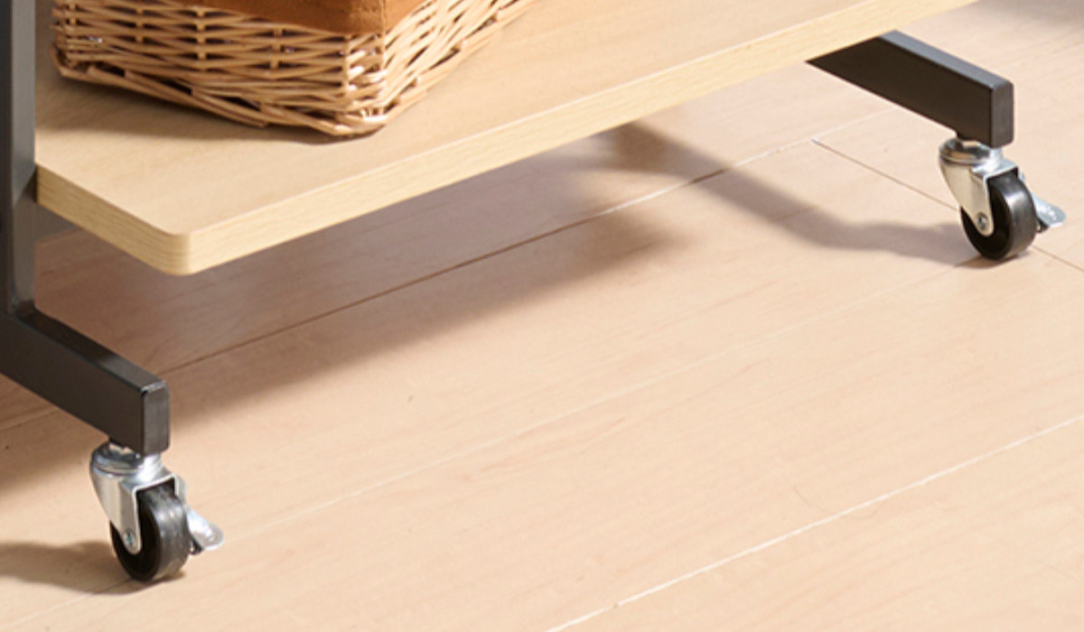 キャスター付きで軽く押すだけでスムーズに移動可能。さらに、ストッパー付きのキャスターが2つ付いているので、作業中はしっかり固定できます。移動と固定、どちらも簡単に切り替えられる設計です。