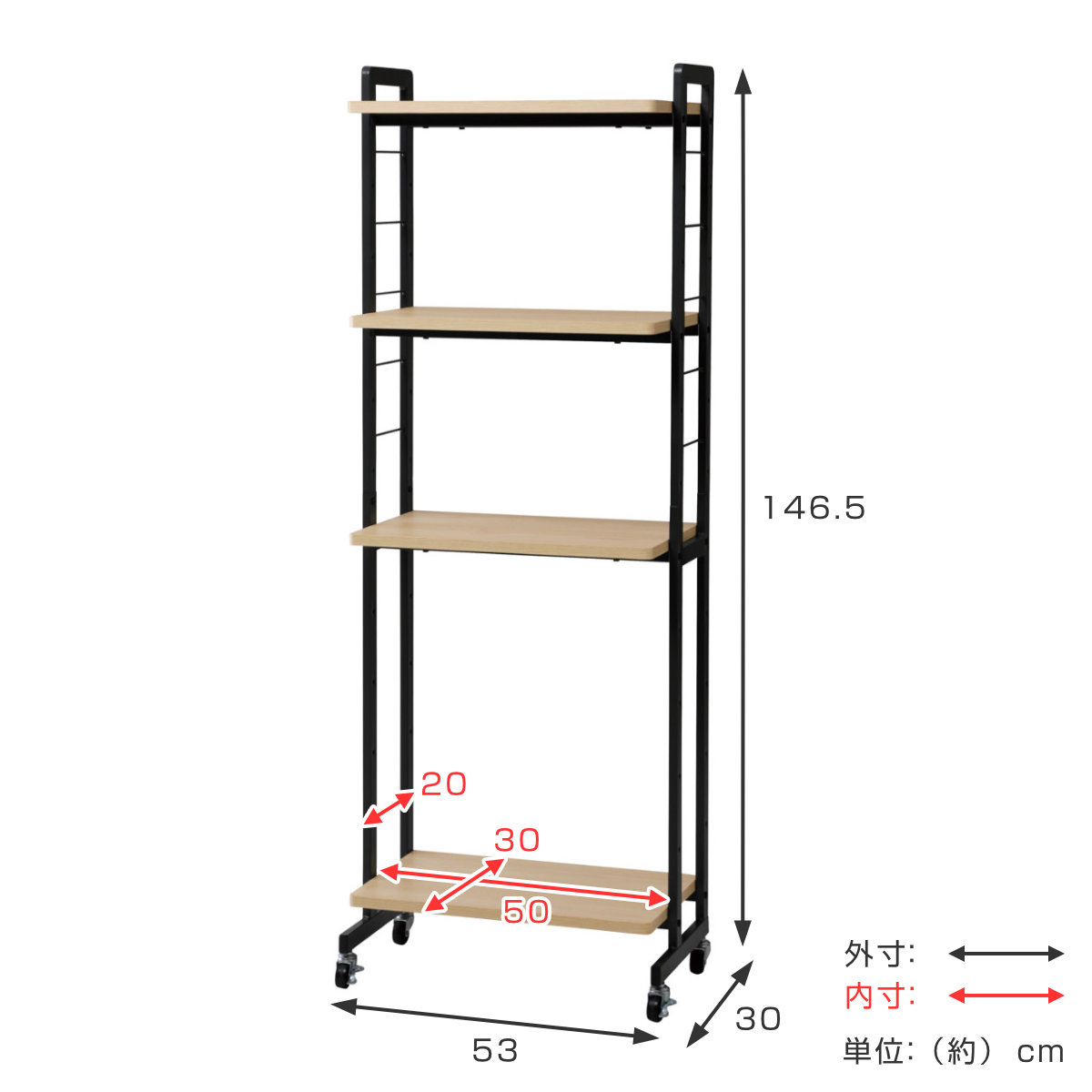 | サイズ | 約 幅53×奥行30×高さ146.5(cm) |