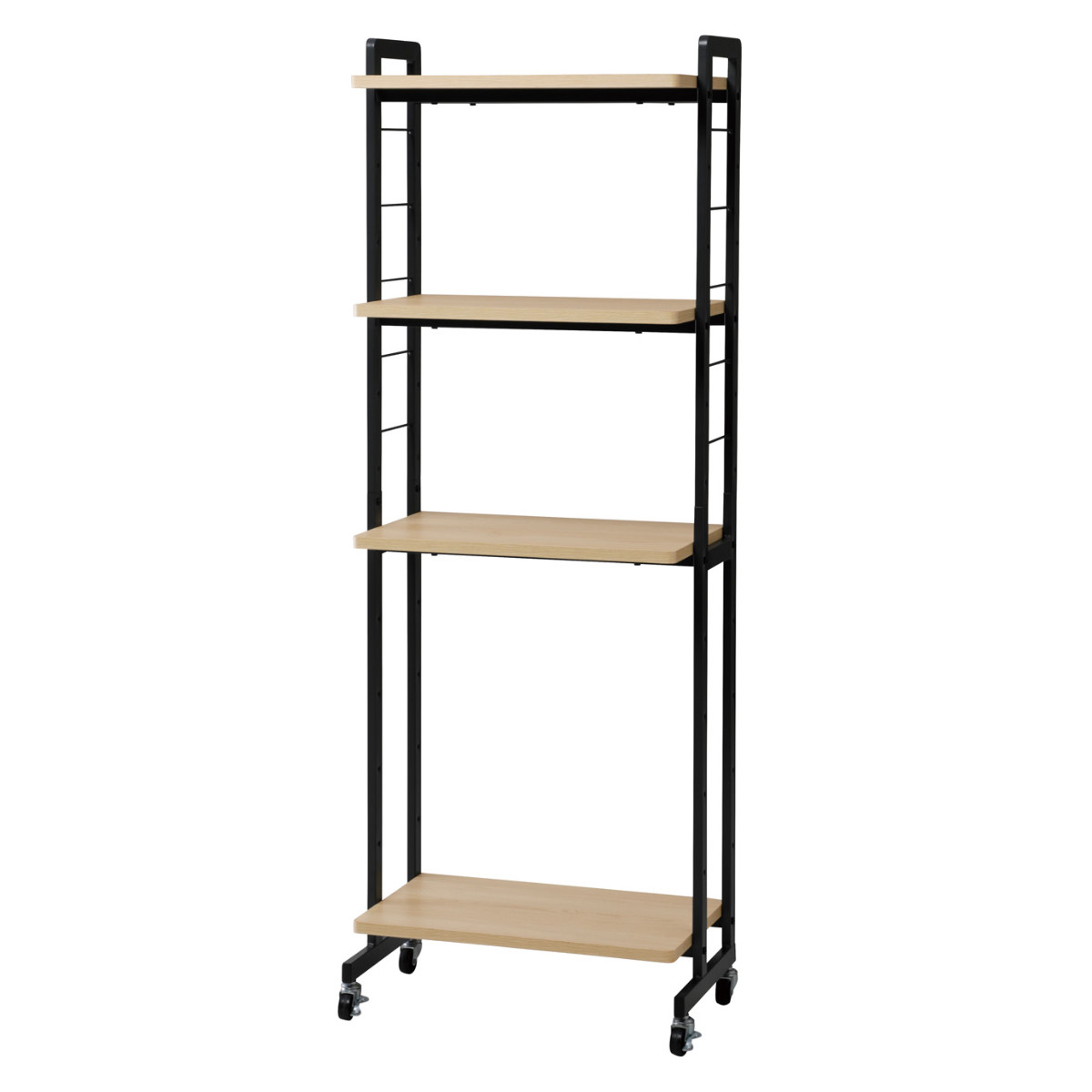 オープンラック 幅53cm 4段 木目調 メラミン スチール キャスター付き 可動棚 ( ラック 棚 本棚 飾り棚 収納 家具 フック付き バイカラー スチールフレーム デスクサイド )