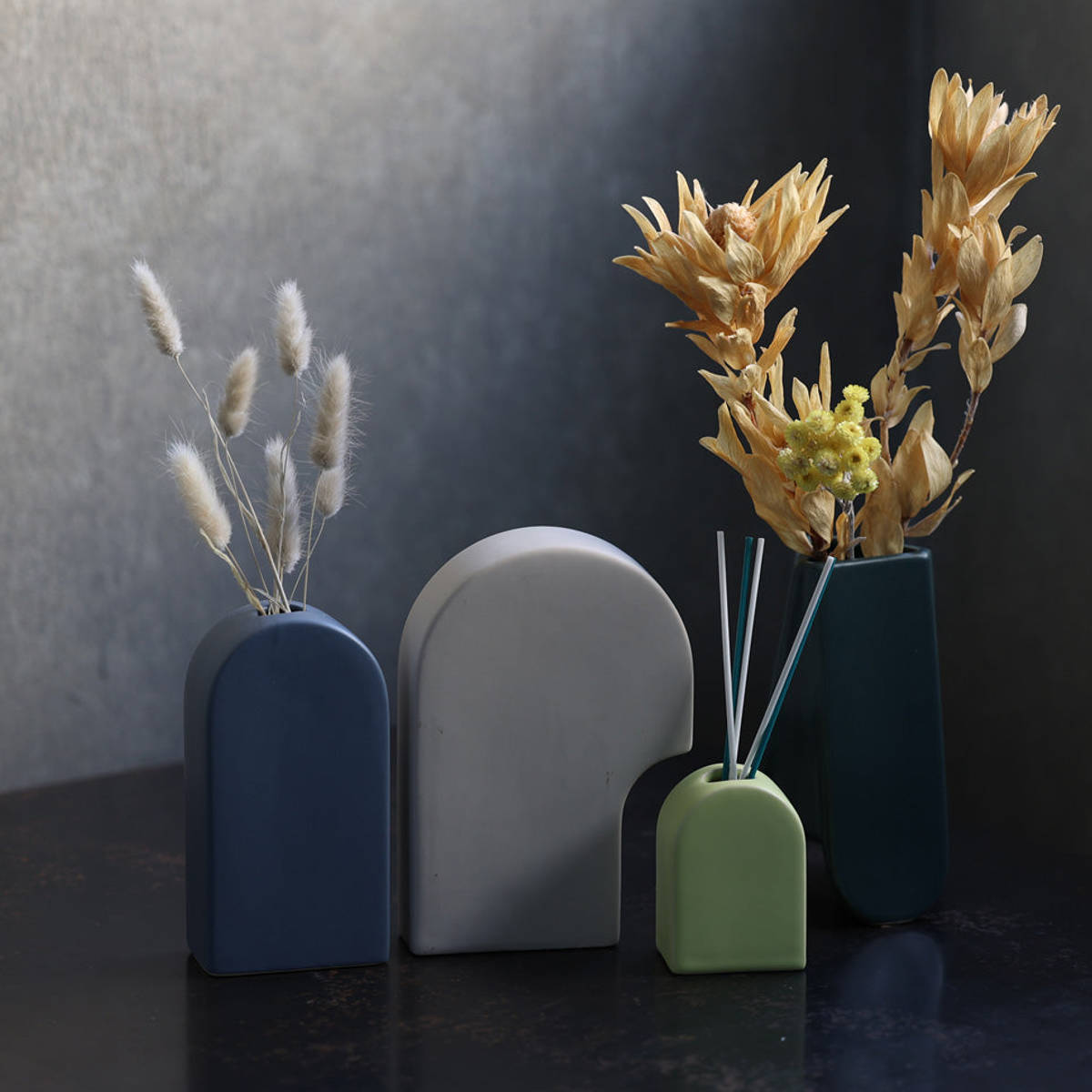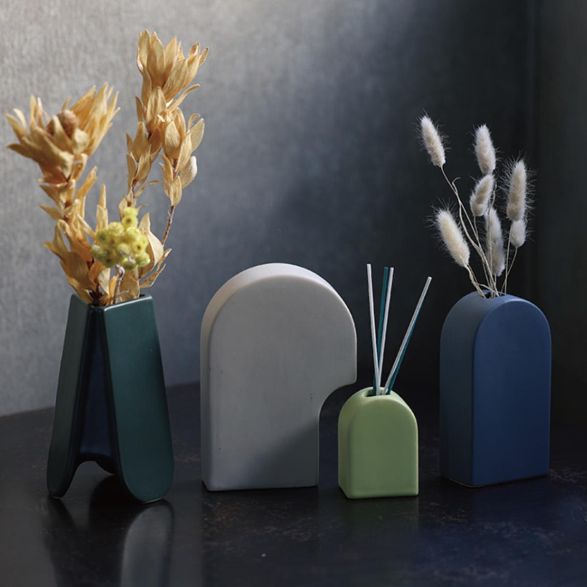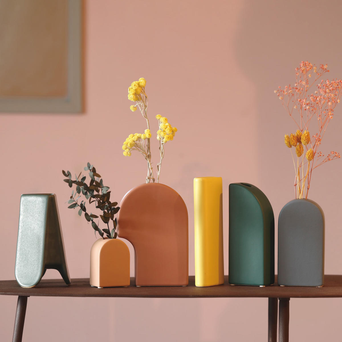 「POM」のフラワーベースと組み合わせることで、空間にリズムと奥行きが生まれます。感性のままに並べるだけで、まるでアートを構成するような楽しさを演出。飾り方次第で、インテリアの表情がぐっと広がります。