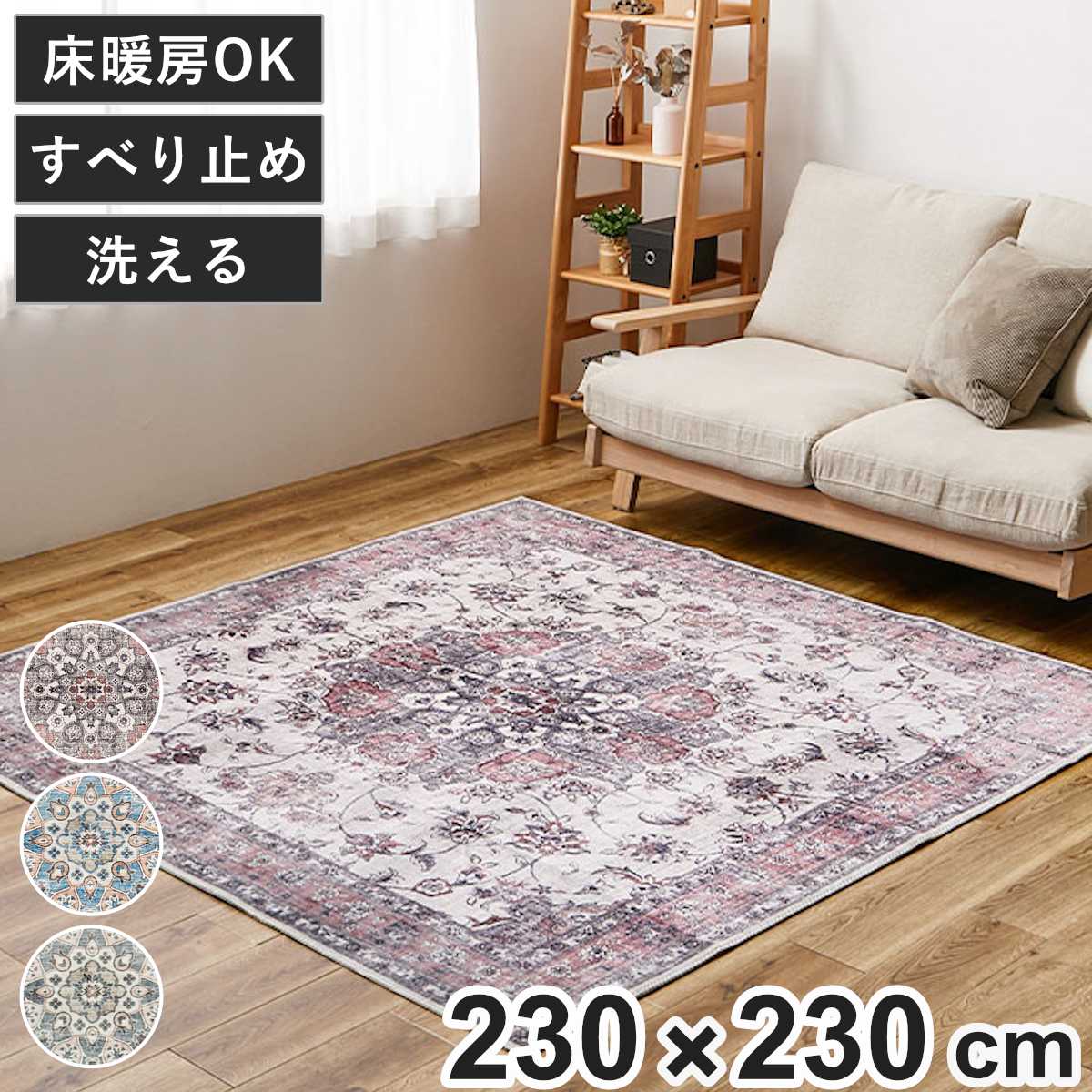 ラグ アンティーク絨毯風プリントラグ カメオ 230x230 ( ラグマット マット カーペット 絨毯 じゅうたん 床暖対応 正方形マット 床暖 床暖房 センターラグ ホットカーペット インテリア プリントラグ ) 【ブルー】