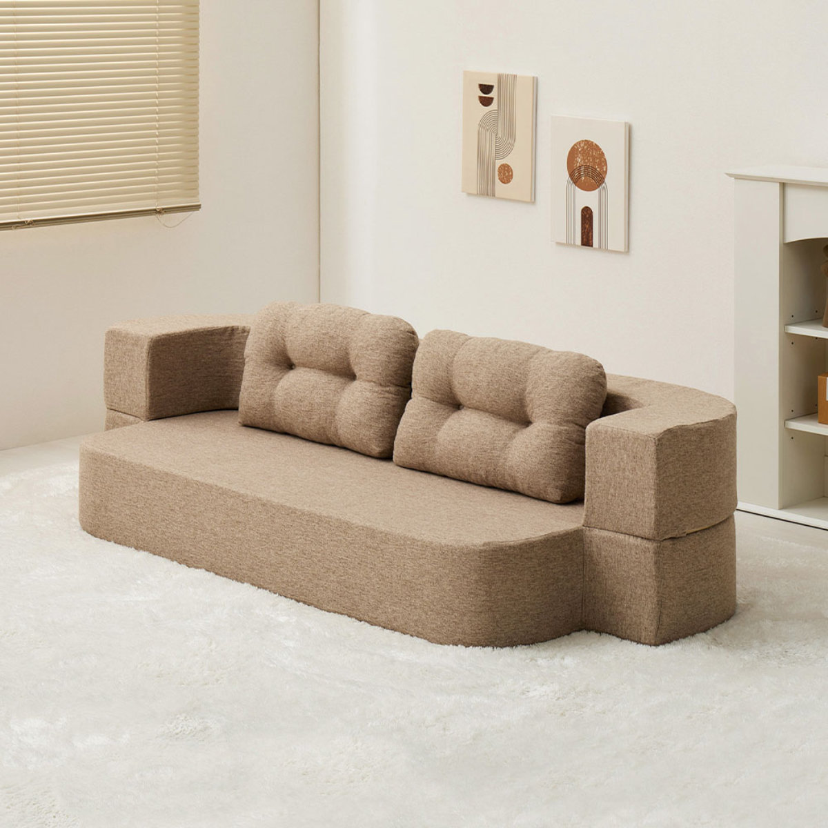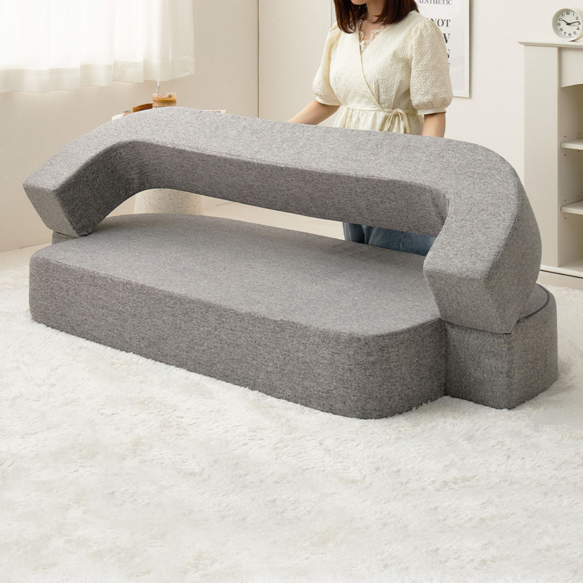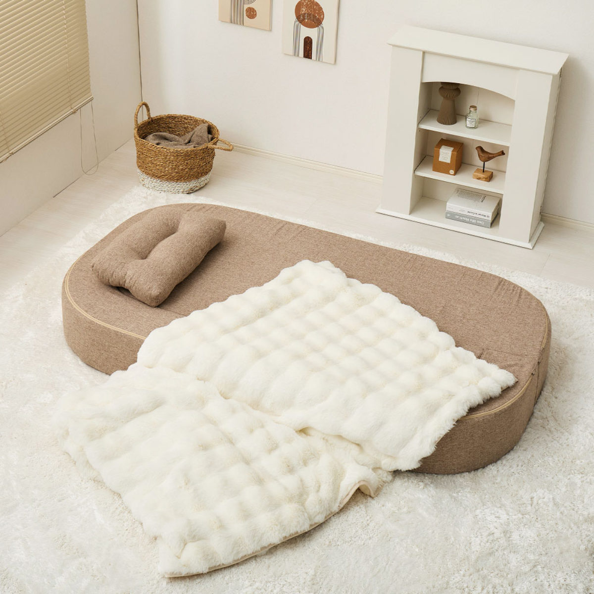 丸みのある、ころんとかわいらしい形のフロアソファです。簡単にベッドにもなる2WAYデザイン。絶妙な弾力と柔らかさで、座り心地も寝心地も快適です。