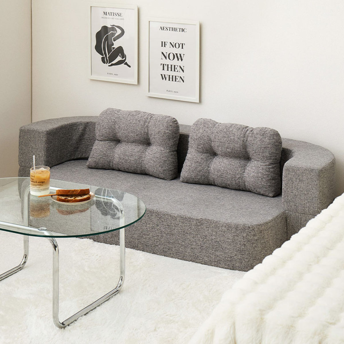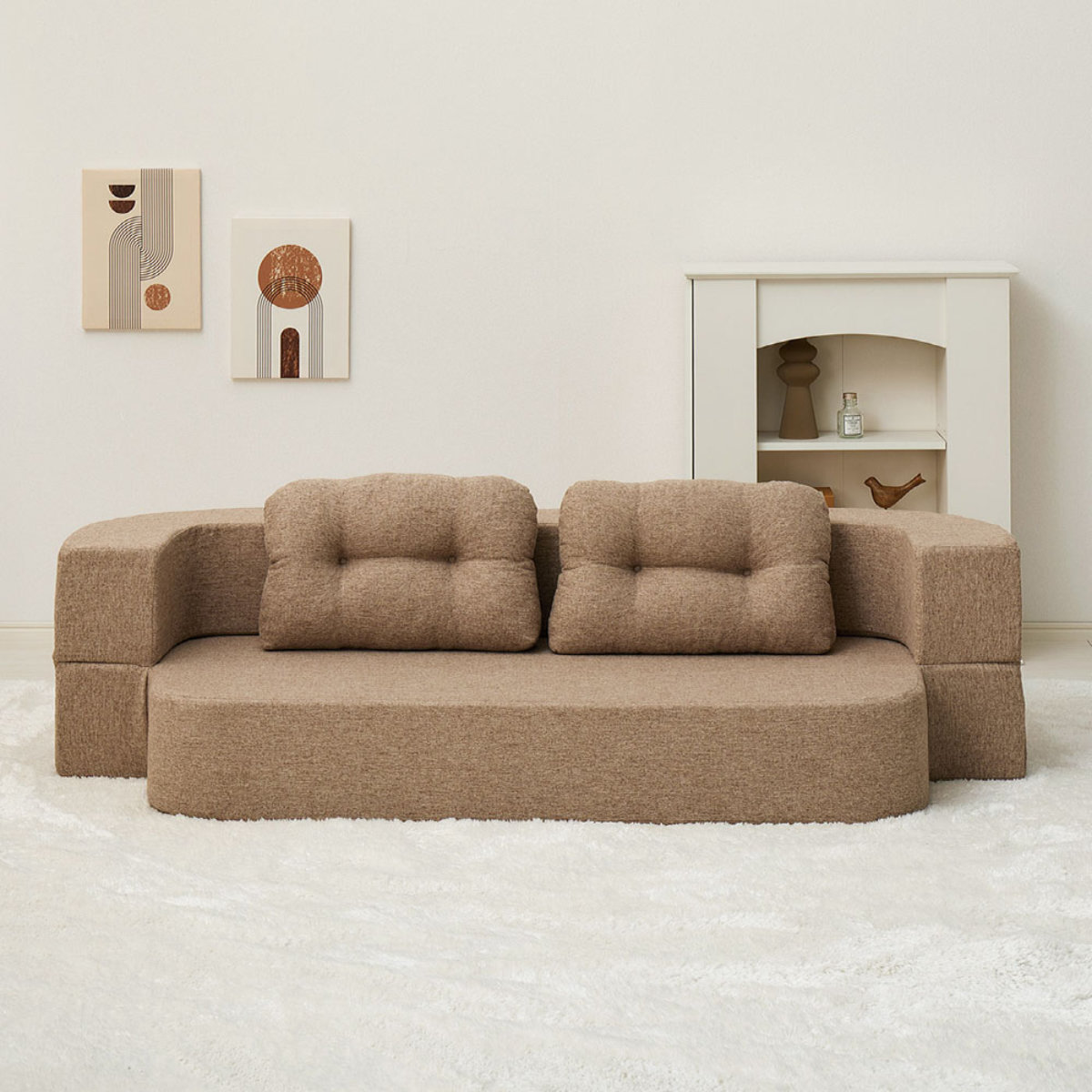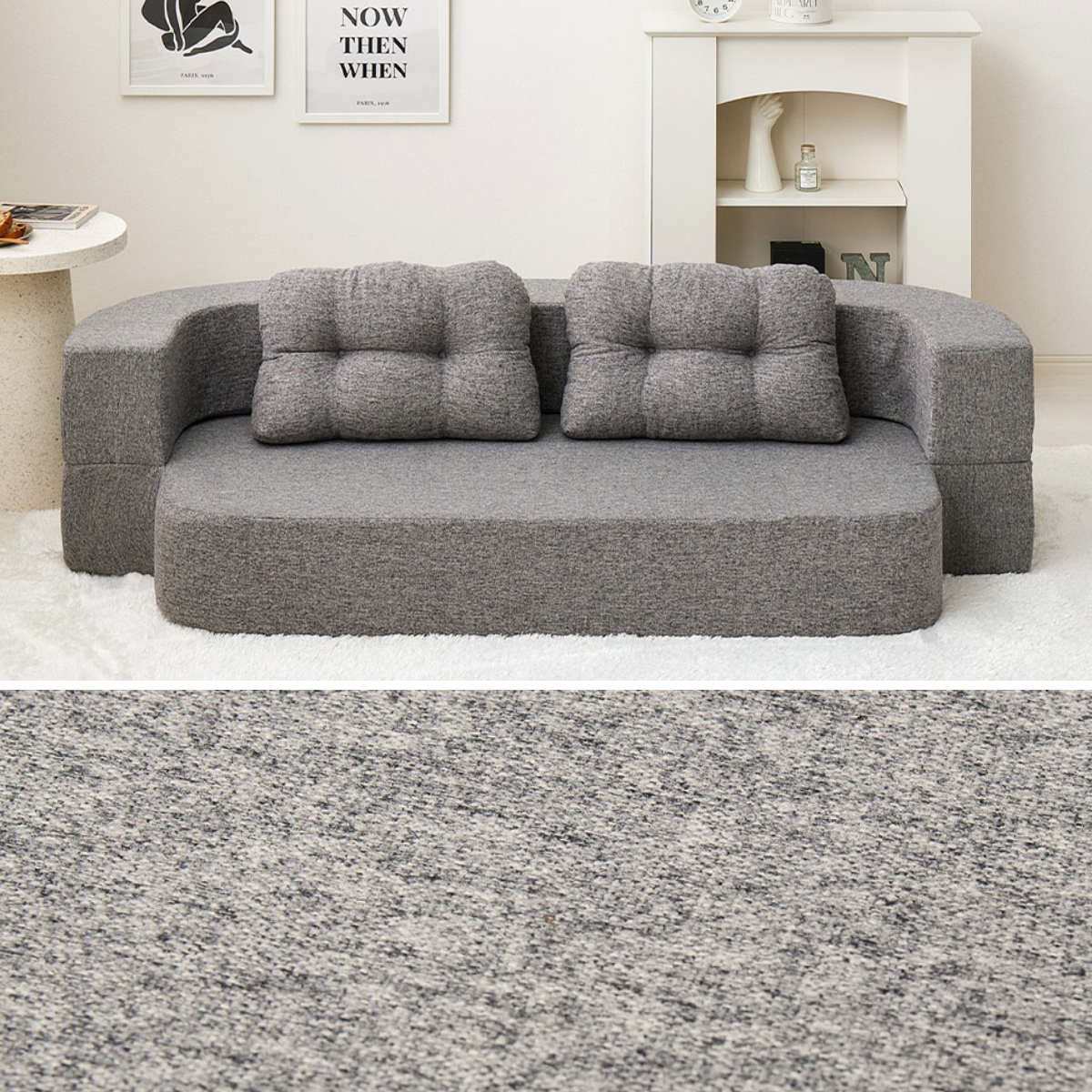 丸みのある、ころんとかわいらしい形のフロアソファです。簡単にベッドにもなる2WAYデザイン。絶妙な弾力と柔らかさで、座り心地も寝心地も快適です。