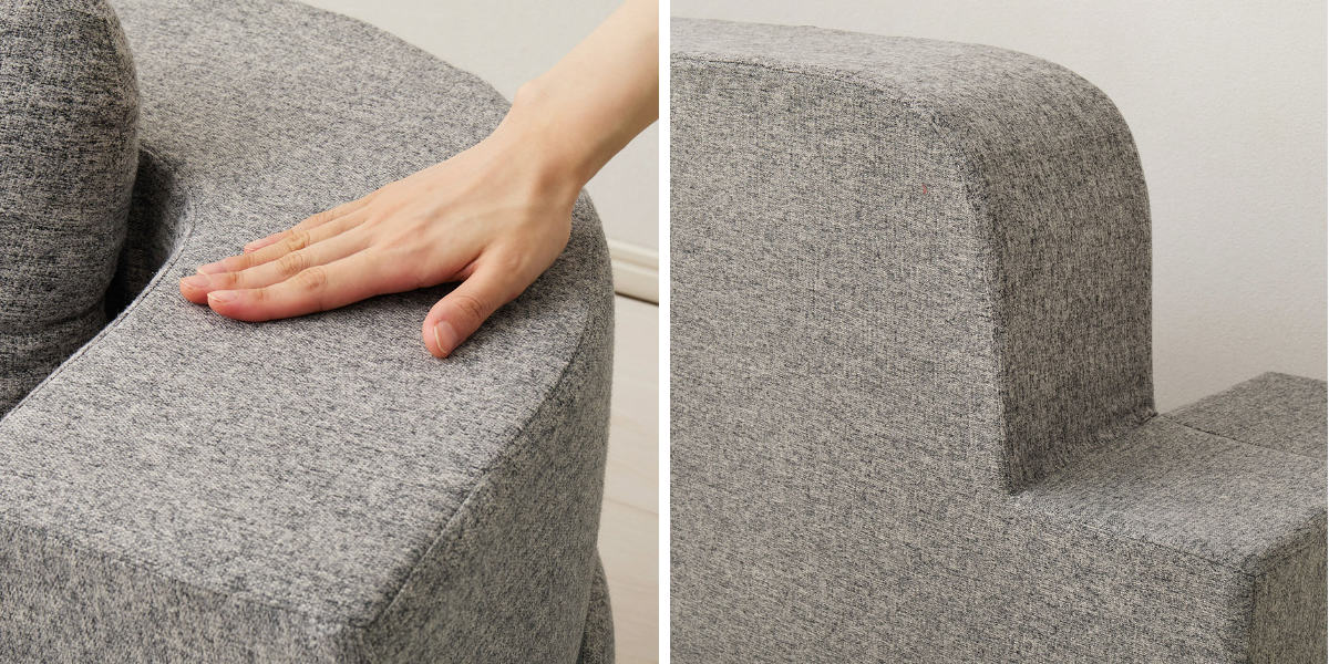 丸みのあるやさしいフォルムと、主張しすぎないシンプルなデザインのソファ。印象に残るフォルムが空間にほどよい存在感を添えながらも、さまざまなインテリアにすっきりとなじみます。