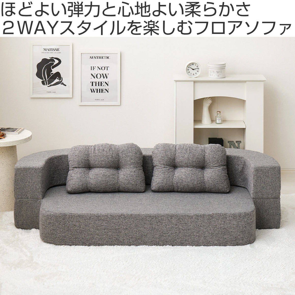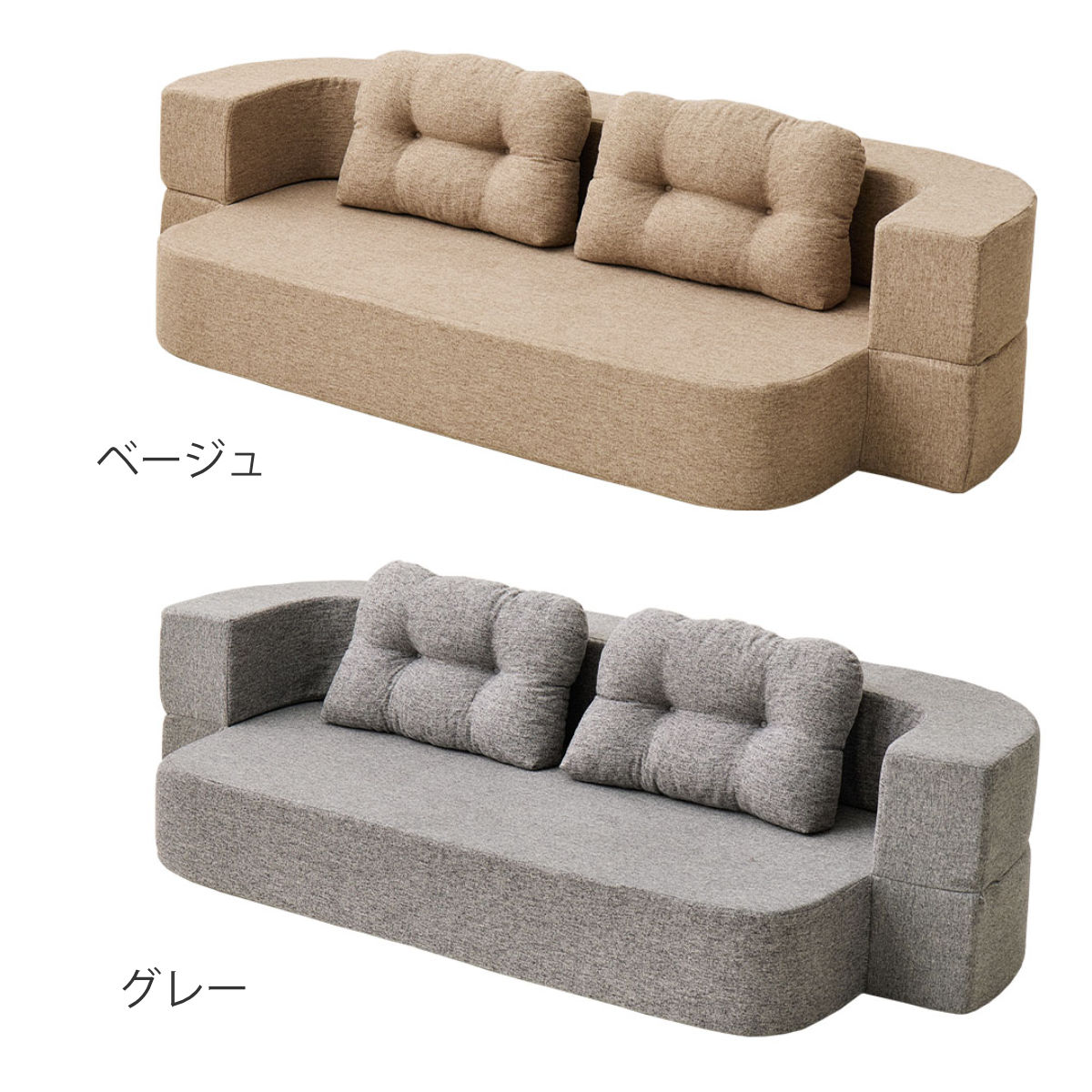 ソファベッド 幅170cm 2way ローソファ フロアソファ ルメール ( ソファ ベッド ソファー 肘掛け クッション付き 座面 広い 完成品 組み立て不要 ワンルーム 1人暮らし 仮眠 来客用 ウレタン リビングソファ ファブリック ) 【ベージュ】
