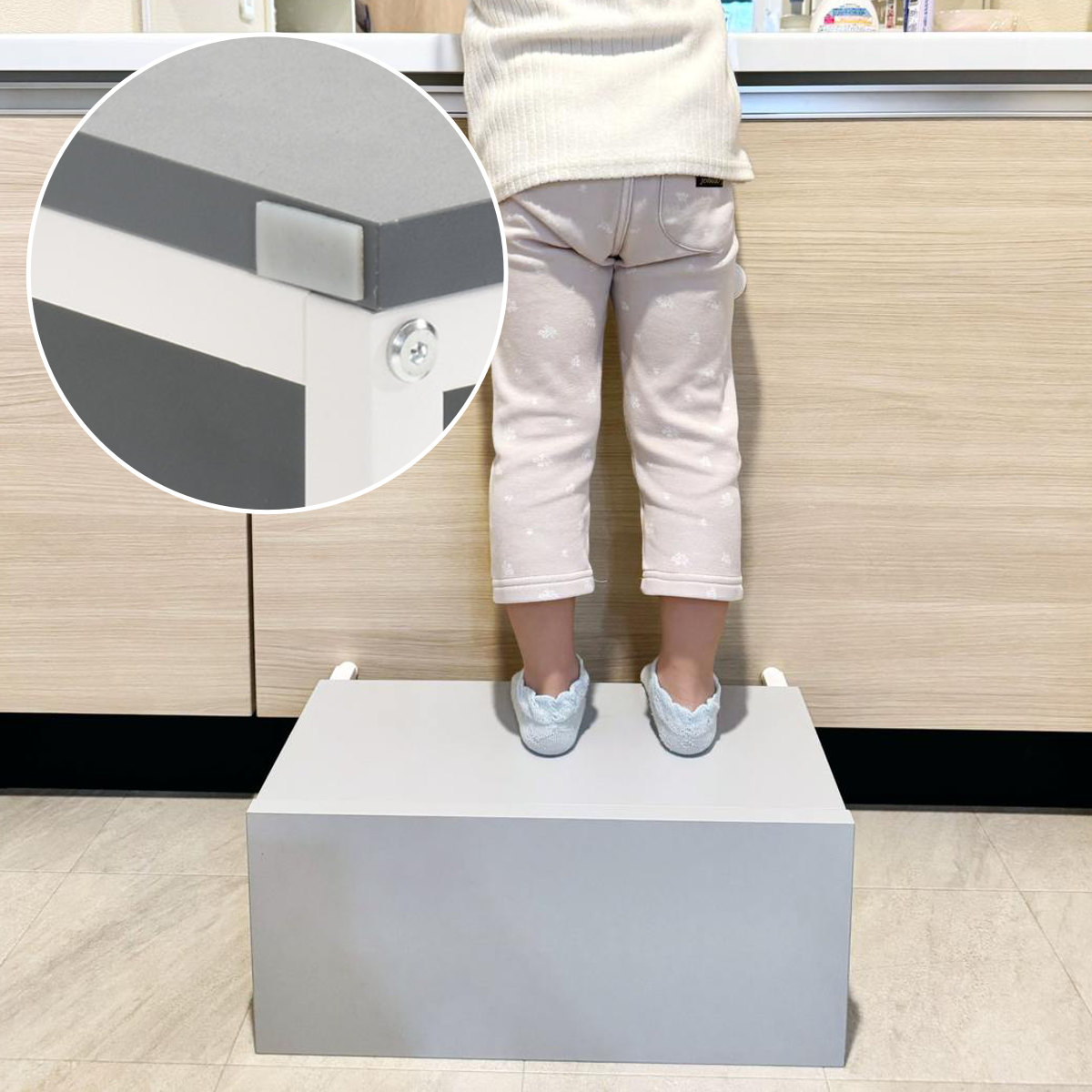 手洗いやキッチンでのお手伝いにも最適です。滑り止めのクリアパッド付きで、水周りでも安全にお使いいただけます。