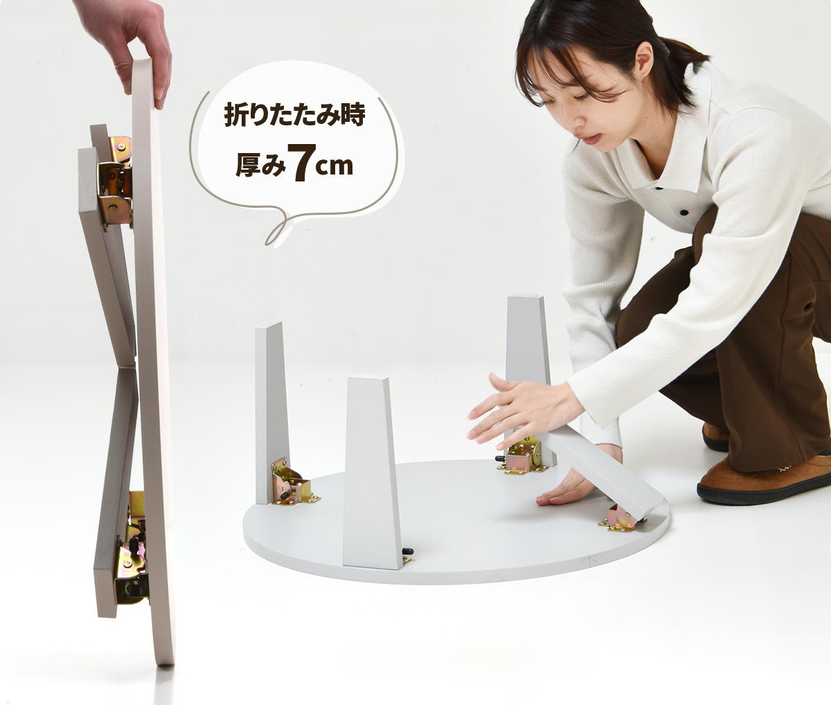 折りたたんだ時の厚さは7cmなので、家具と壁の隙間やちょっとしたスペースにも場所をとらず収納できます。