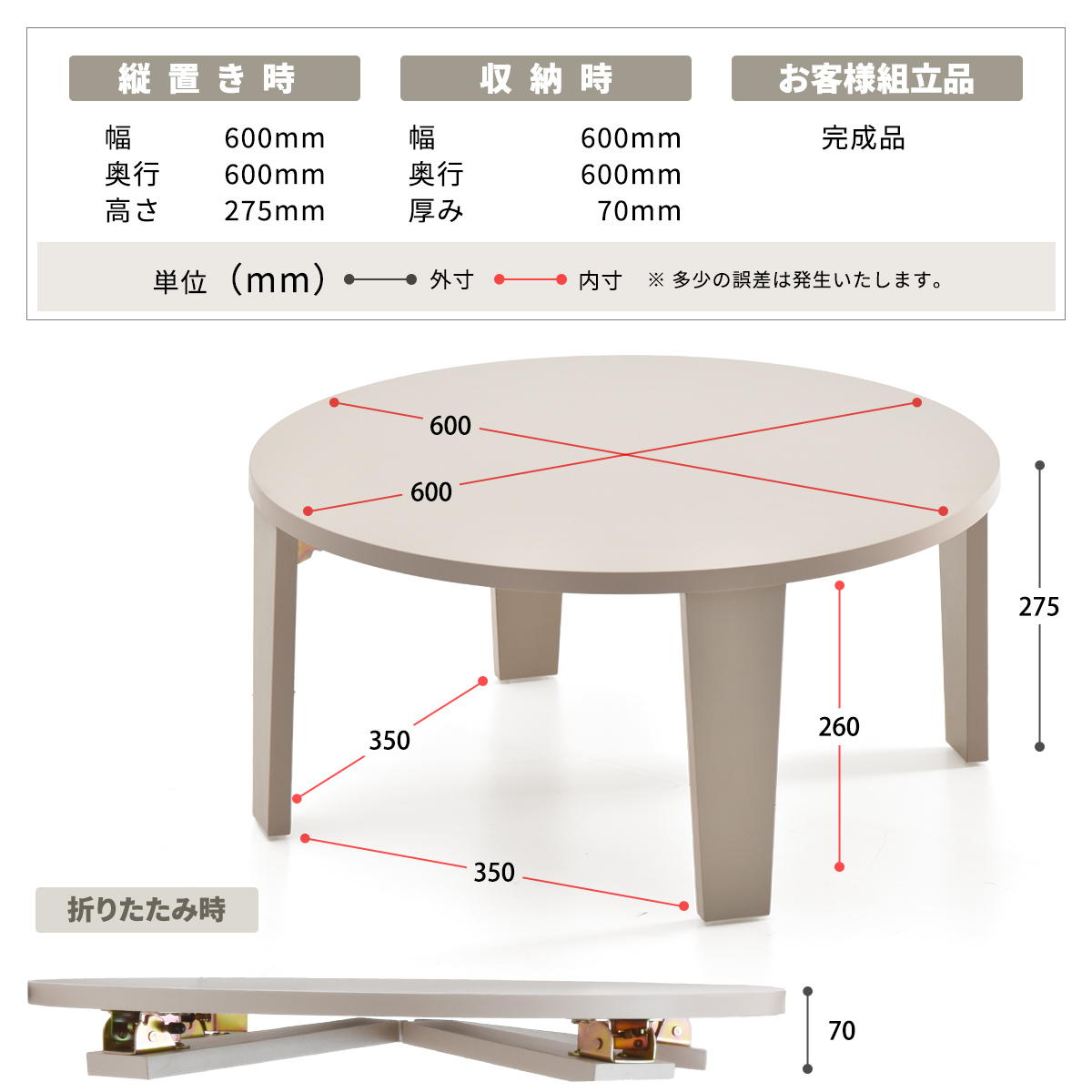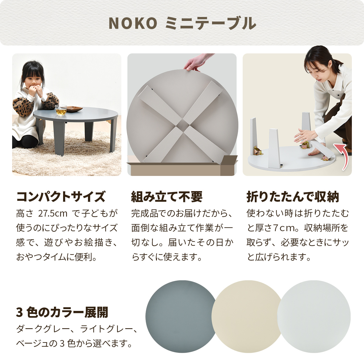 ローテーブル 直径60cm 折りたたみ ミニテーブル Noko ( テーブル 机 丸 センターテーブル 丸テーブル 完成品 折りたたみテーブル キッズテーブル 軽量 折り畳み リビング コーヒーテーブル コンパクト リビンングテーブル 軽い ) 【ベージュ】