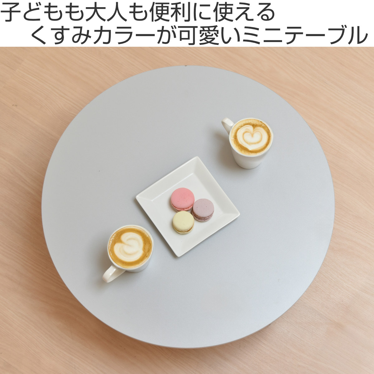 お部屋にすっと馴染む、シンプルなミニテーブルです。マットな天板は北欧風や和モダンなどどんなインテリアにもなじみやすく、落ち着いた空間を演出します。子どもから大人まで使えるサイズ感で、遊びやお勉強、おやつタイムにもぴったりです。