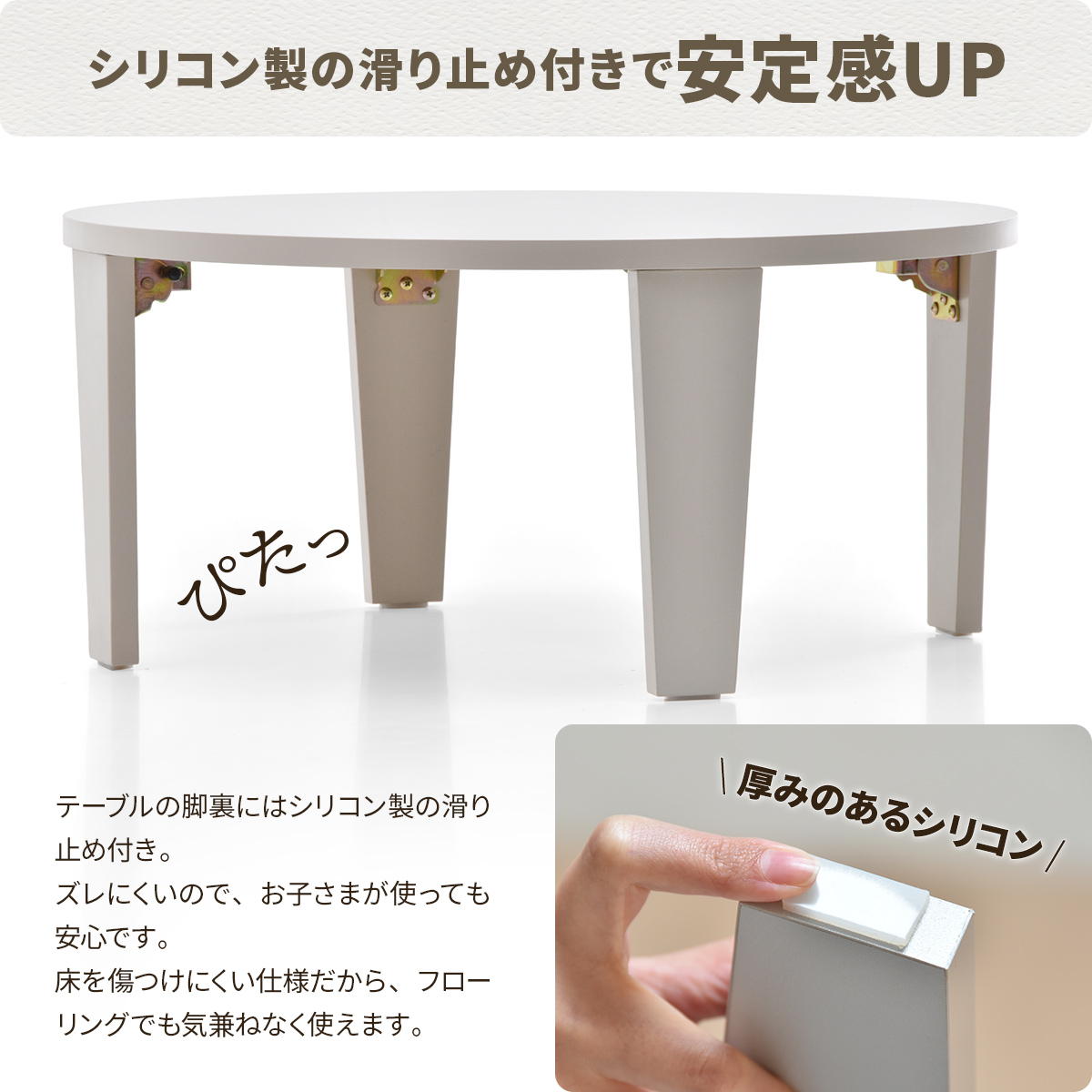 脚裏にシリコン製の滑り止めを貼るだけで、届いたその日から使えます。
