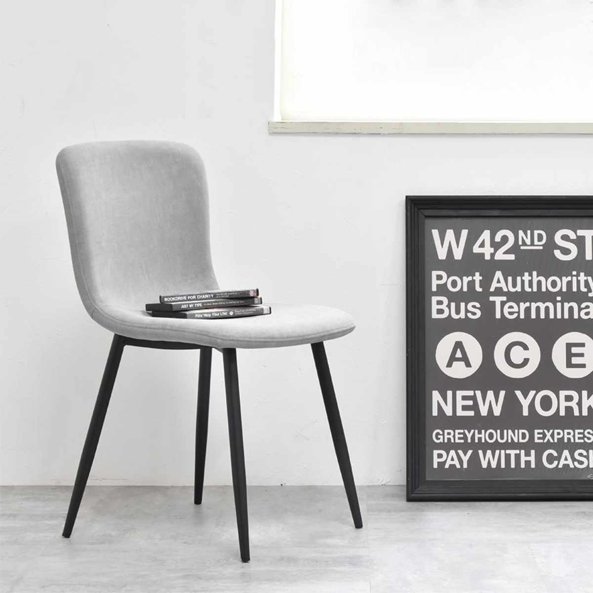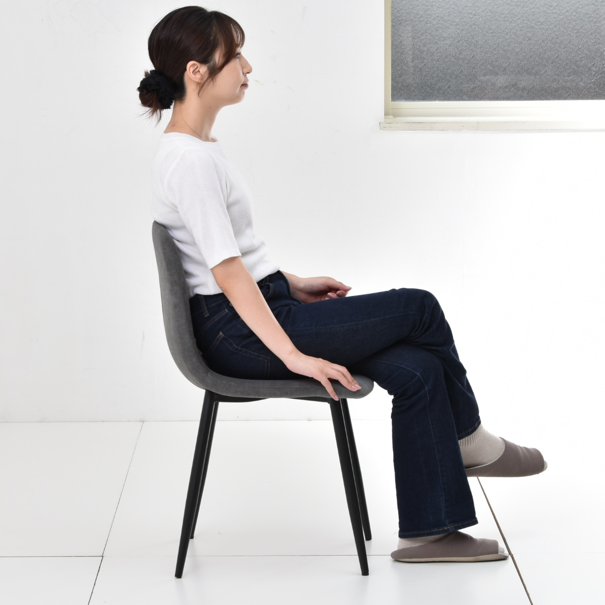 スリムでシンプルなデザインのチェア。アームレス仕様のすっきりした見た目で、立ち座りもスムーズです。なめらかな肌触りのピーチスキン生地を使用し、やわらかな印象です。カラーはダークグレー・ライトグレーの2色展開です。