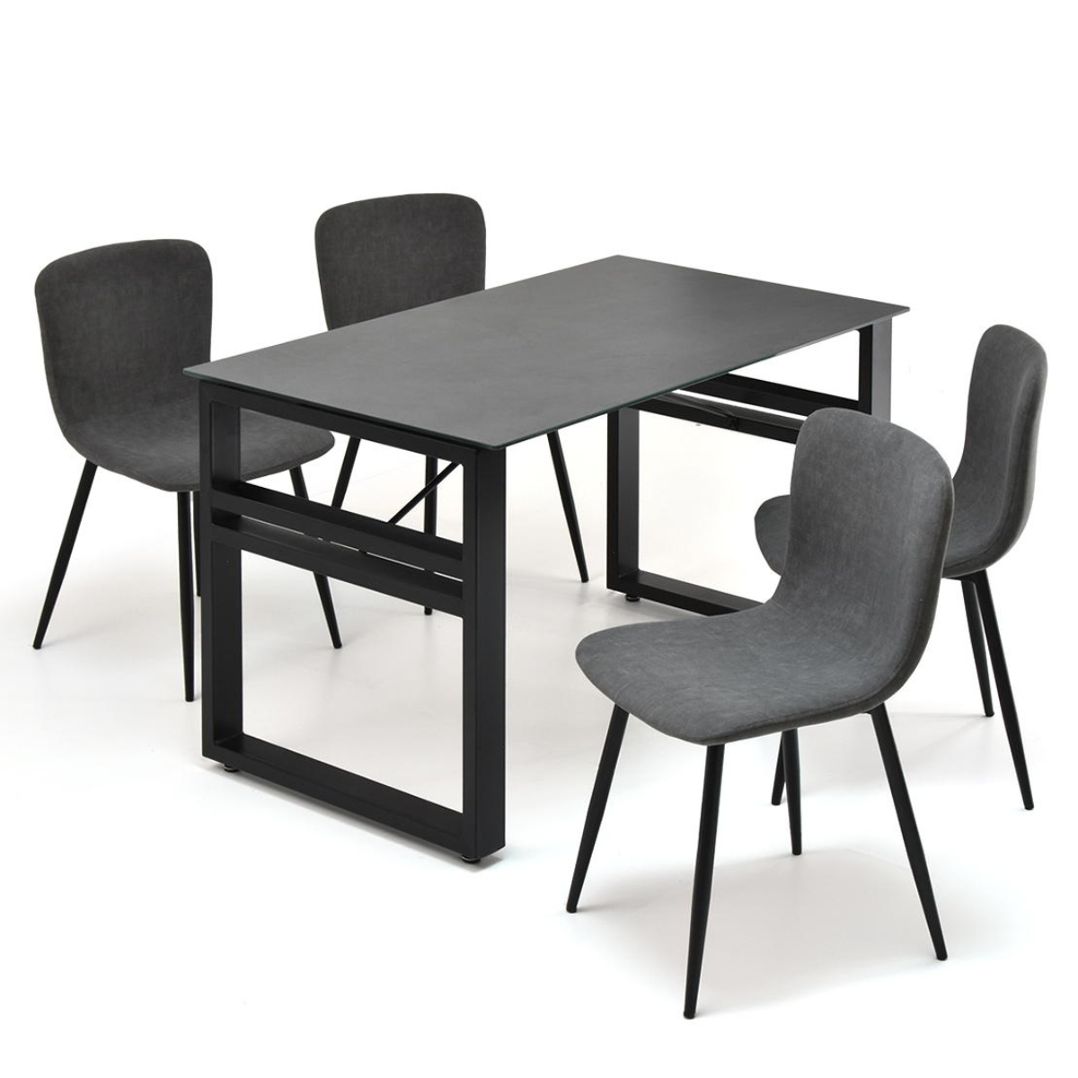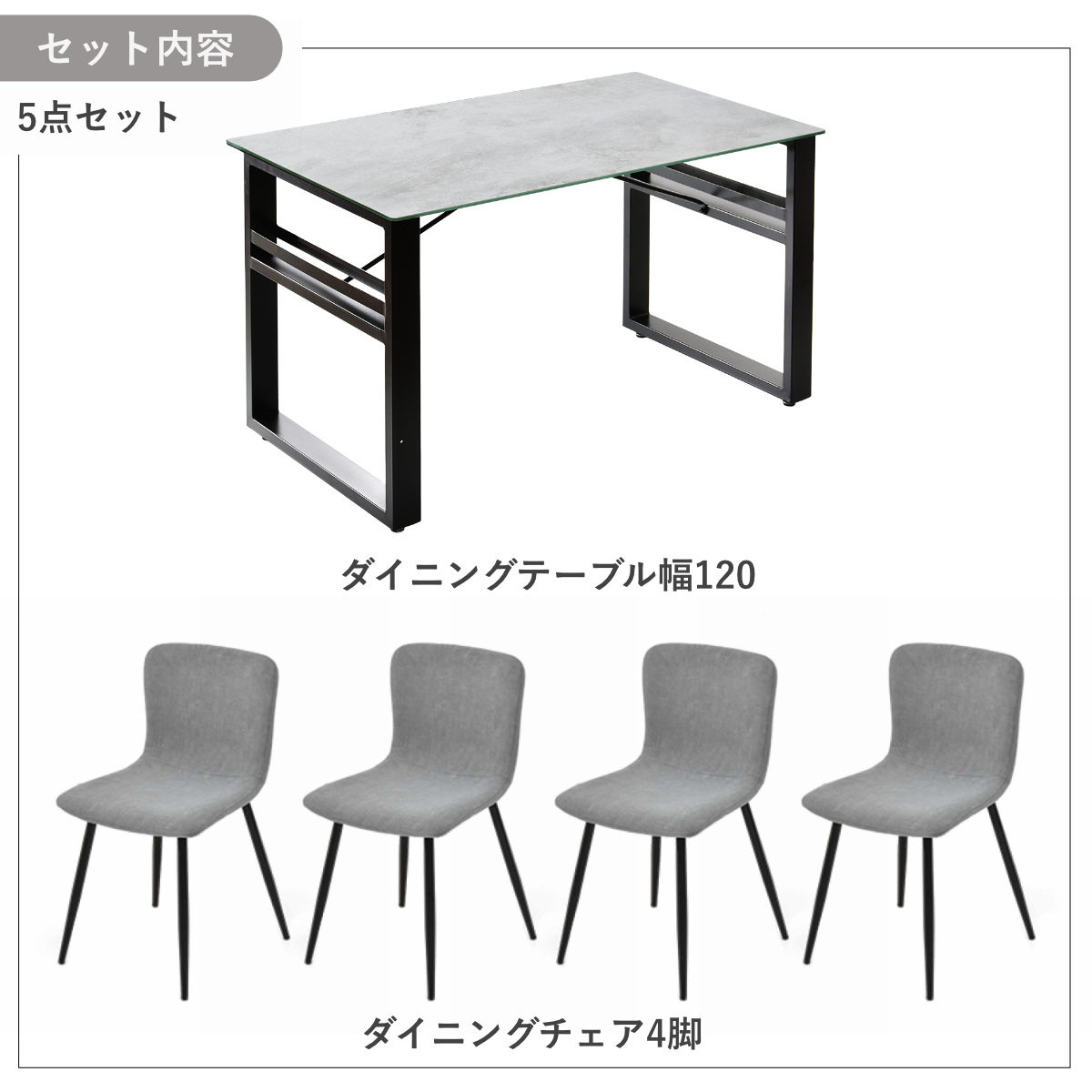 ダイニングテーブル&チェア 5点セット 幅120cm セラミック天板 フェムトチェア ( ダイニングセット テーブル 食卓テーブル 4人掛け ダイニングチェア 収納付き 長方形 食卓机 石目天板 小物 調味料 収納 配線 熱 傷 強い デスク ) 【ダークグレー×ダークグレー】