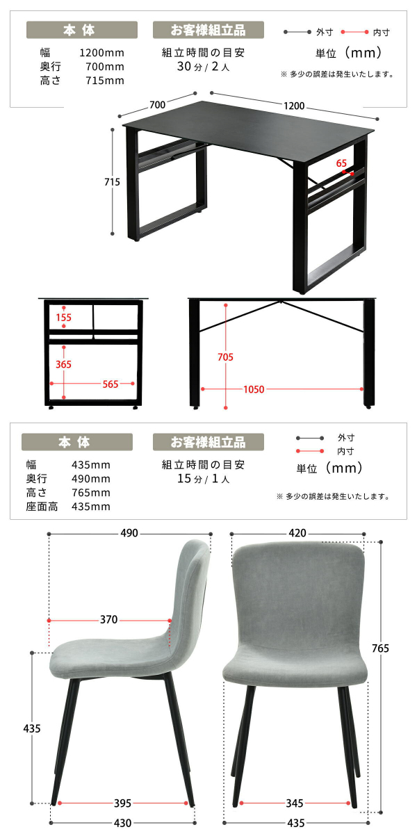 チェア:約 幅43.5×奥行49×高さ76.5(cm)