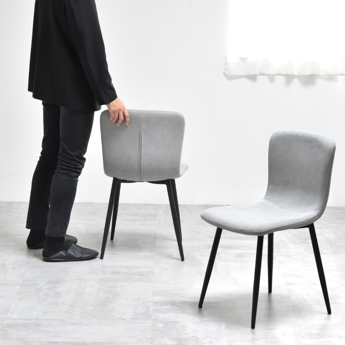 スリムでシンプルなデザインのチェア。アームレス仕様のすっきりした見た目で、立ち座りもスムーズです。なめらかな肌触りのピーチスキン生地を使用し、やわらかな印象です。カラーはダークグレー・ライトグレーの2色展開です。