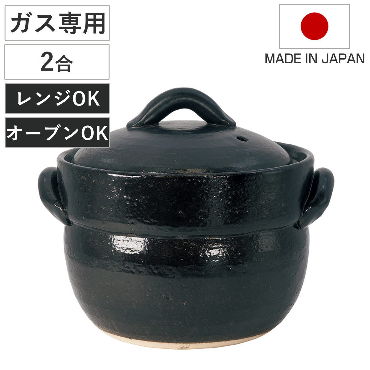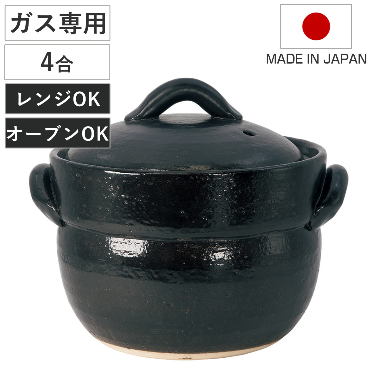 炊飯土鍋 4合炊 直火専用 黒萬古ごはん鍋 萬古焼 日本製 ( ごはん鍋 ご飯土鍋 陶器製 どなべ おすすめ 電子レンジ対応 オーブン対応 4合炊き ガス火対応 直火対応 ご飯鍋 土鍋 炊飯鍋 炊飯用土鍋 四合炊き 二重蓋 )